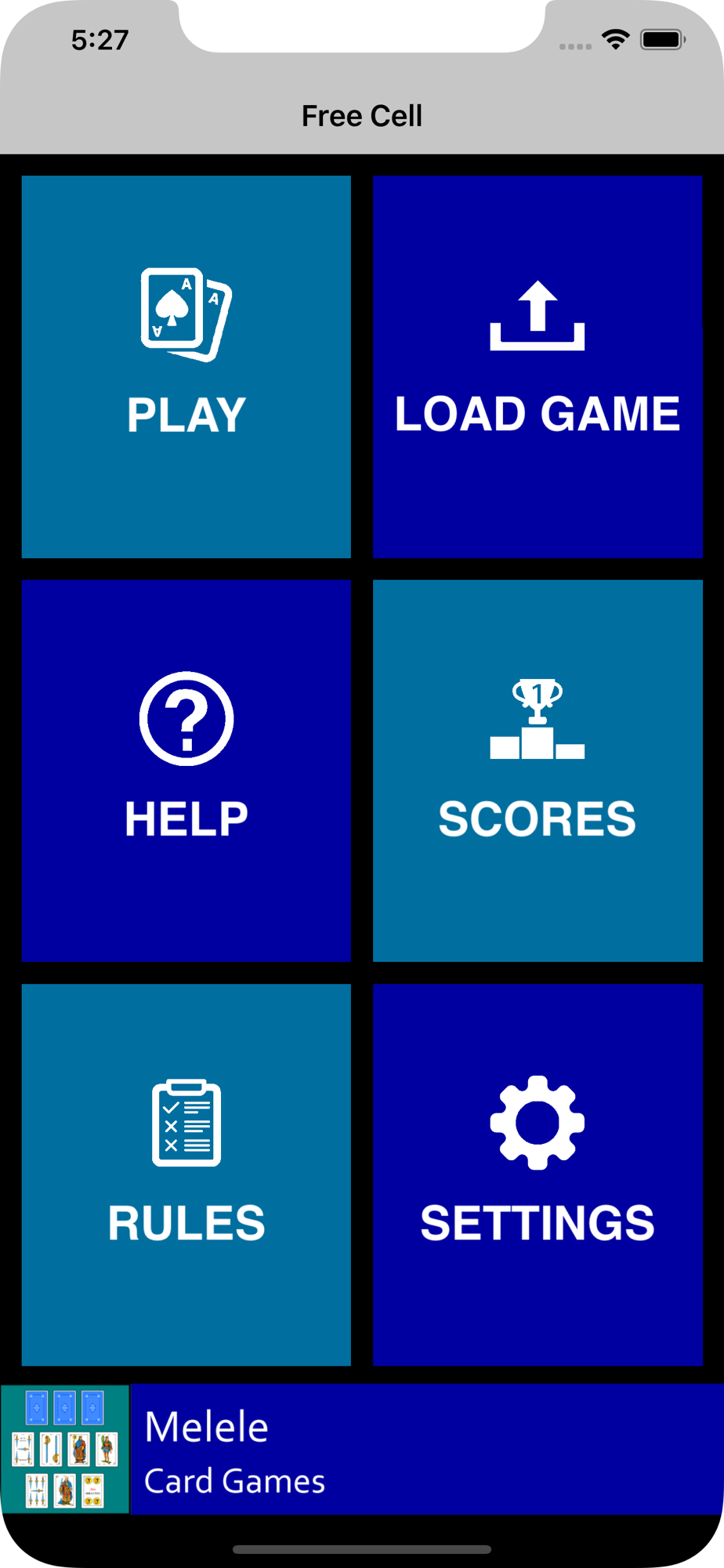 Other Melele games: Klondike, Pyramid, Tri Peaks, Gin Rummy, Hearts, Sevens, Oh Hell, Crazy Eights, Spades,...