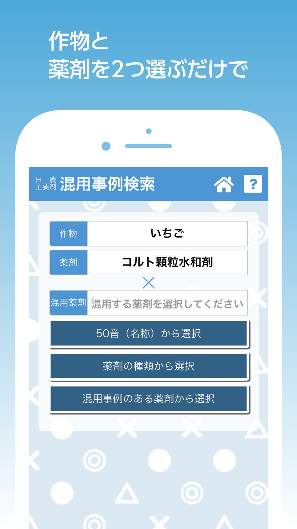 また、(1)と(2)で選んだ作物と薬剤の組み合わせで、混用事例がある薬剤を検索したり、
