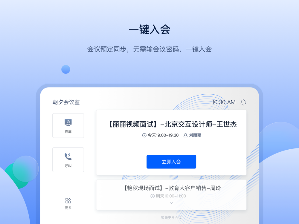 配搭小智盒子(智能视频会议终端),满足企业会议室召开视频会议的场景。小智云会控作为小智盒子的一个无线控制器,让开会变得更加简单,易用。
