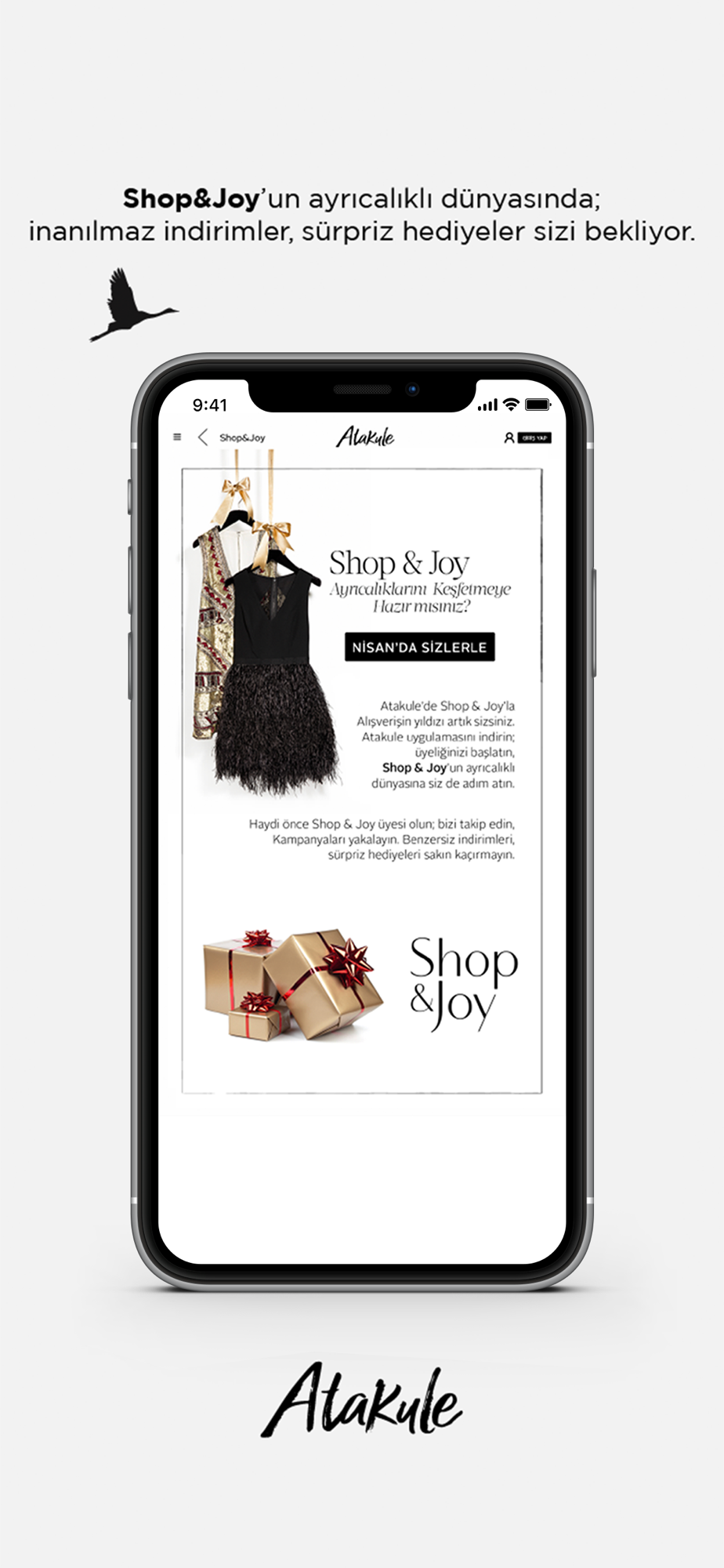 Shop & Joy'a üye olup, Atakule'nin size özel avantajlarını yakalayabilir, hesabınızı takip ederek, kazandığınız indirim ve hediyeleri anında görebilirsiniz.