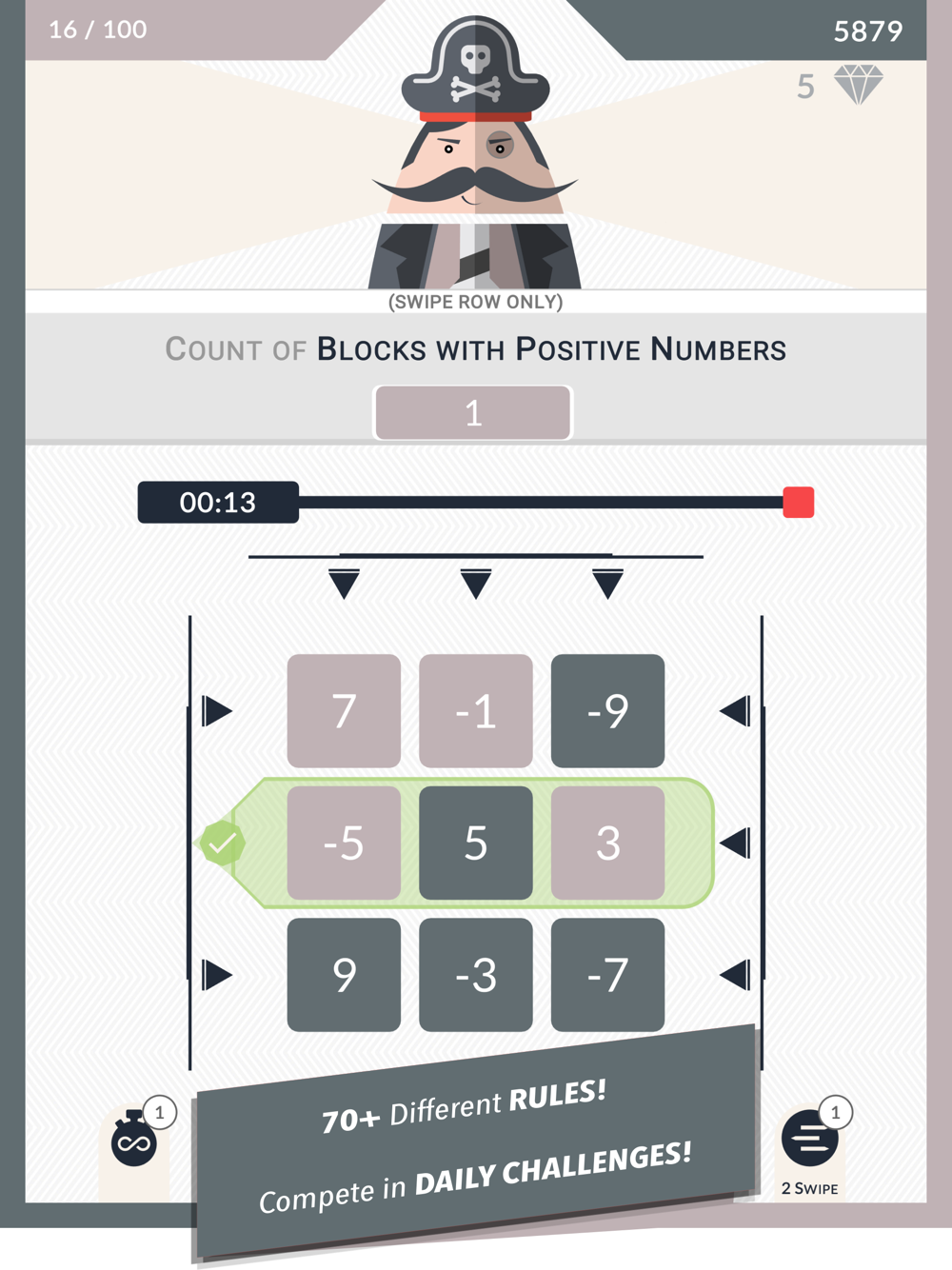 We give you a grid, we give you a crazy rule, & we give you some values. All you have to do is look hard at the grid & find which row or column has that value for the given rule. Easy as you like it. And then you just have to do it for 99 more times. So, sharpen your brain, sharpen your eyesight, sharpen your reflexes & bring it all together to quickly scan the grid in different directions & find the correct answer before the timer runs out! Try out a game with a unique gameplay & challenge yourself to reach the summit of 100 Rounds with the rules becoming more crazier & wackier with each passing grid. We promise you would never have played anything like this! Deep dive into the game & see how far you can make it before a mistake sends you hurtling back to the start. Along the way, you will encounter all different kinds of shapes, numbers, letters, boxes, clocks & what not. There are no Worlds, no Levels, no Difficulty Settings, no Boosts, no Bonus, no Achievements. An uncomplicated game with just one singular objective & that is to complete all the grids. And also just pure fun. * Unique gameplay which is a twist on the grid search puzzles. * Pick up & Play. One touch Gameplay in Portrait mode. Just swipe to mark the correct row/column. * Over 70 different types of rules for you to figure out. * Daily Challenges - Complete a new challenge everyday. * 4 different types of aids/power-ups available for use. * A cute way of visually depicting the progress in the game through the growing moustache of Mr. Mustachio's character. * Uncomplicated game with a single objective to complete all the rounds. * Leaderboards to show where you stand in the charts. * Comprehensive Statistics to give a glimpse how well you have been playing the game. * Single Player & works offline. Mr. Mustachio builds upon the gameplay of the evergreen word search puzzles & puts a little spin on that!. Use your power of observation to search the grid for the row or column which matches a given rule & a corresponding value! Of course, we added a time limit & threw in some colours to make things interesting! The character of Mr. Mustachio adds a fun dimension to the game! Watch the moustache grow with more grids you figure out! Here is a small silly poem explaining the moustache :) "An egg shaped guy, extraordinary is his panache, Always smiling, as he twirls his magnificent moustache! With a grid of blocks, he tests your skills, Fast reflexes, quick thinking, needed in this game of thrills! Mr. Mustachio needs your help, truth be told, The span of his whiskers, the grid controls! Add, Subtract or Multiply, do the proper math & make his handlebar grow, Diamonds will be your reward, as you chase your high score!" Maybe you like math. Maybe you like to do brain training exercises. Maybe you like to test your reflexes. There is something for everyone in this small & simple, yet quite fun & challenging game. Enjoy! ********************************* Thanks for reading so far! I am the developer of 'Mr. Mustachio' series of games. All of them are simple games, which are a test of the observation skills of the player. All the games share the same premise where we provide a grid & a 'rule', & the player has to figure out which row/column of the grid matches the given rule. Although the games share this unique gameplay, they are vastly different from each other with crazy & weird rules involving numbers, words, shapes etc. The games are constantly updated & have come a long way since the first game (which has now been rebranded as Mr. Mustachio : Number Search). I hope the games are fun as well as a bit educational for kids. Don't forget to check out all the games mentioned below! * Mr. Mustachio : Grid Search * Mr. Mustachio : Number Search * Mr. Mustachio : Word Search * Mr. Mustachio : #100 Rounds If you like playing the game, please consider leaving a rating. If you want to drop some feedback, please do so at