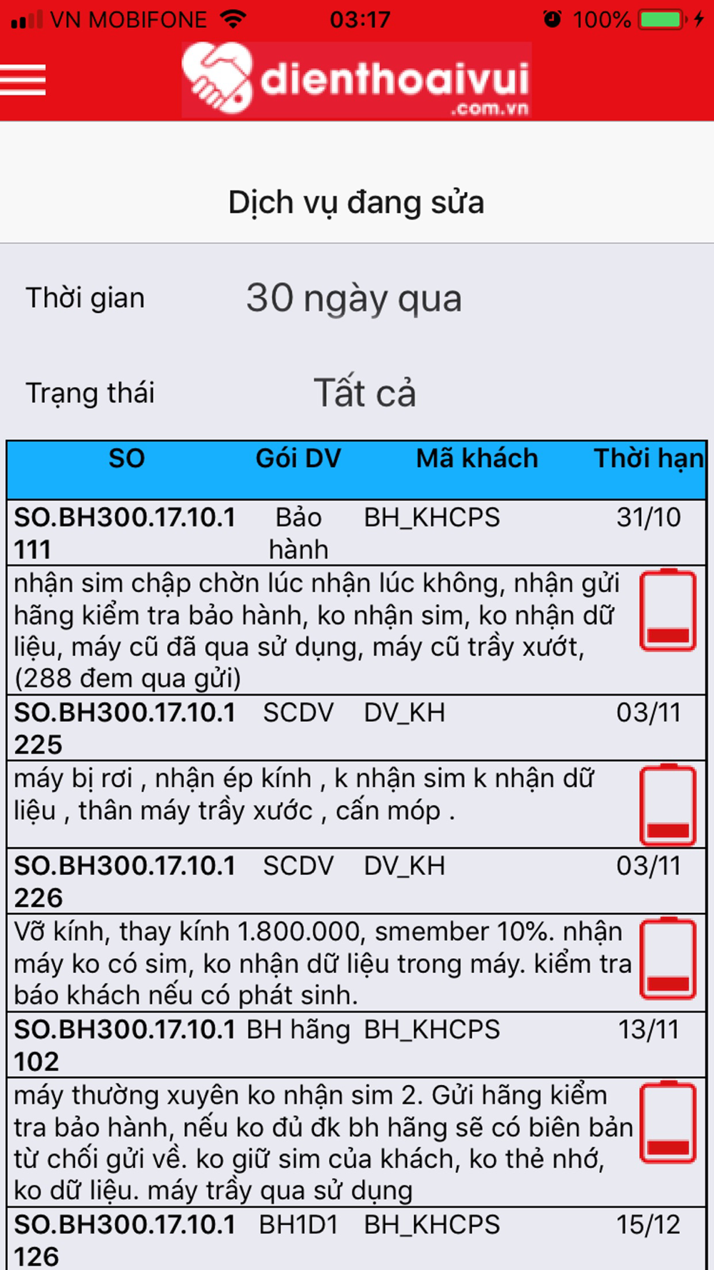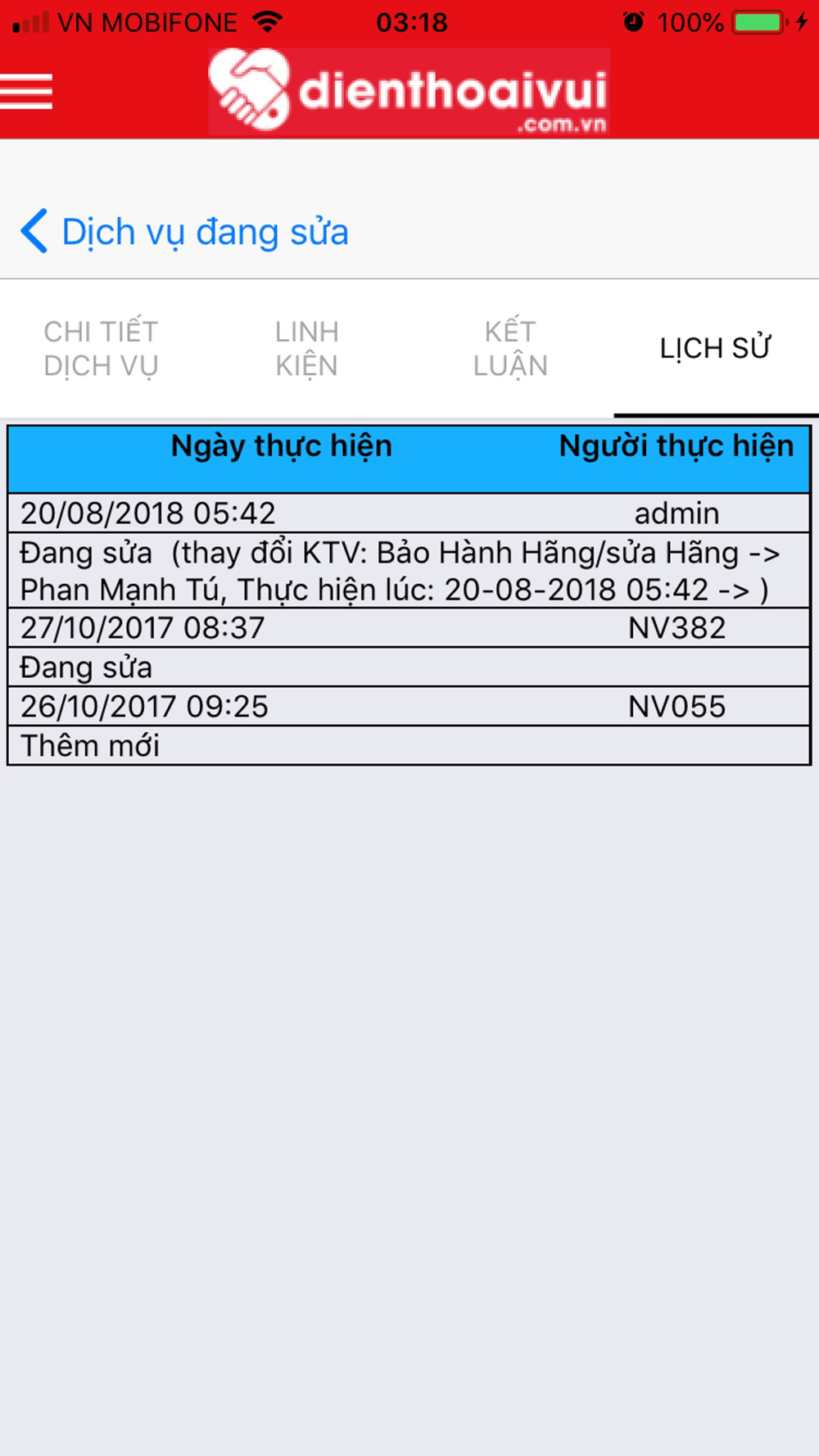 Ứng dụng sửa chữa bảo hành dành cho kỹ thuật viên