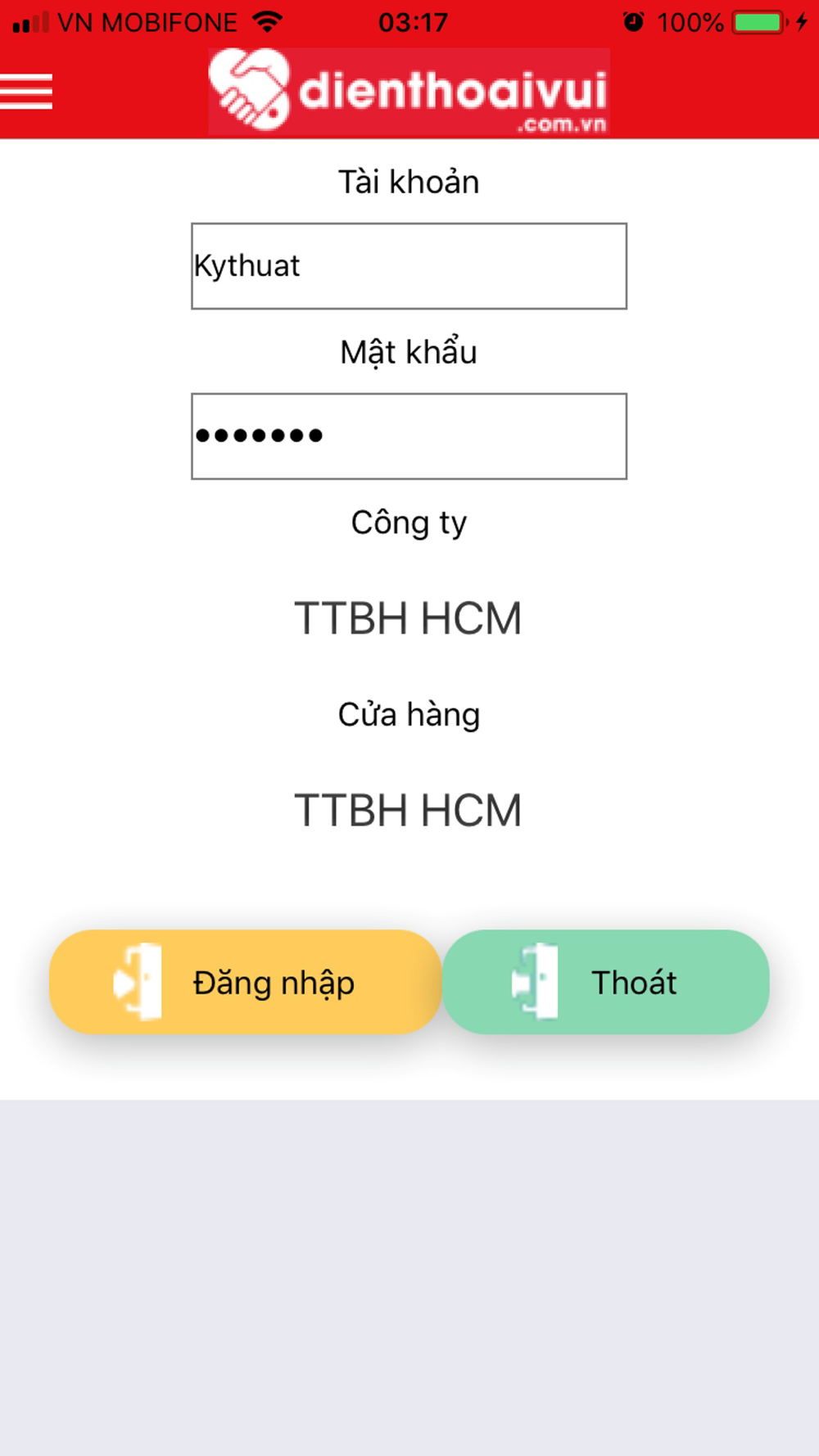 Chỉ có nhân viên của CellphoneS, Điện Thoại Vui mới có tài khoản sử dụng.