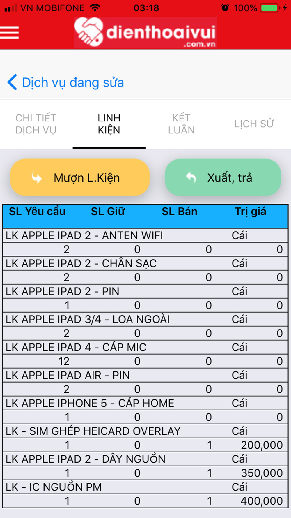 - Đề xuất bán, thay thế linh kiện