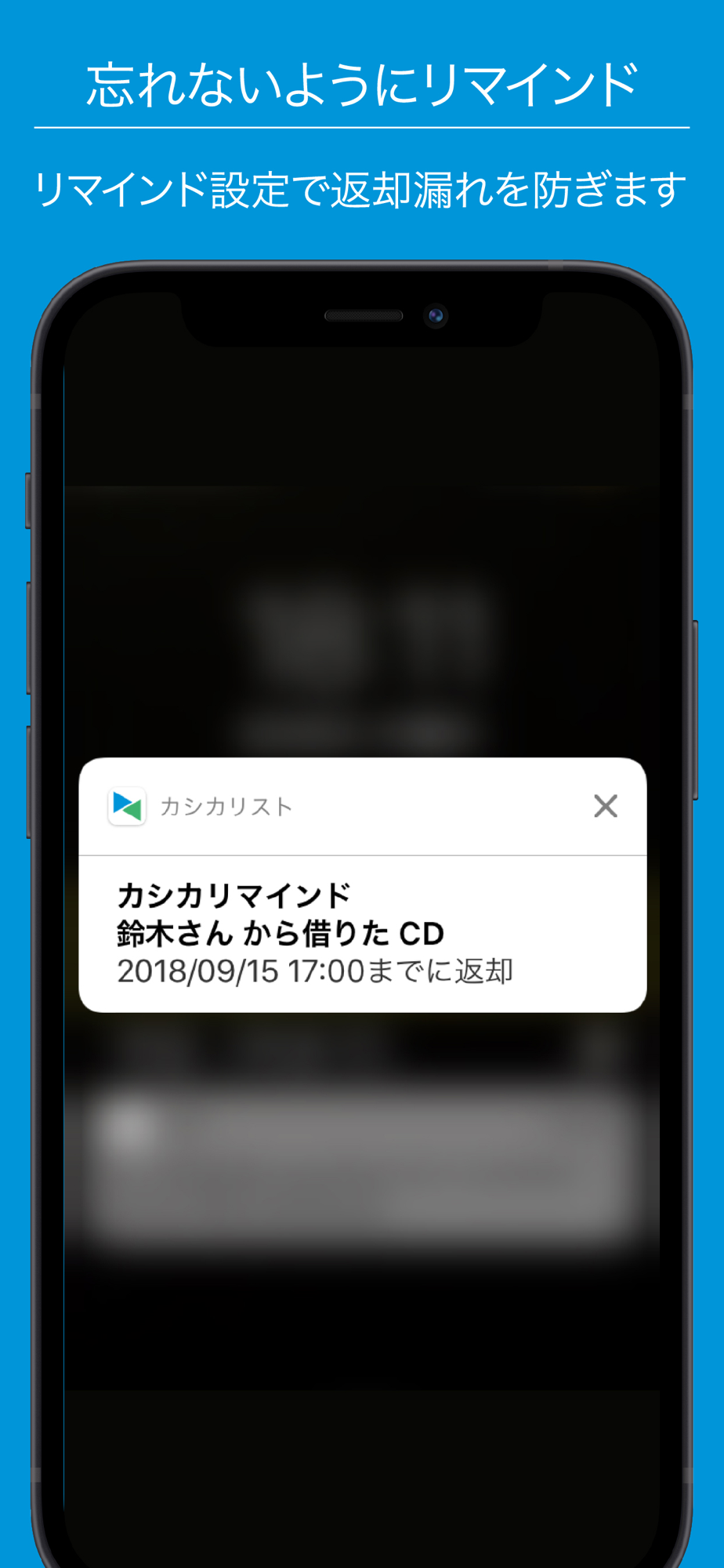 カシカリストを使えば、このような物やお金の貸し借りについて簡単に記録・管理ができ、忘れないようにリマインドを設定することができます。