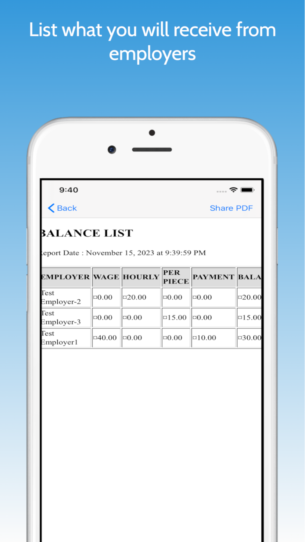 - Employer balance follow up for one or more employers