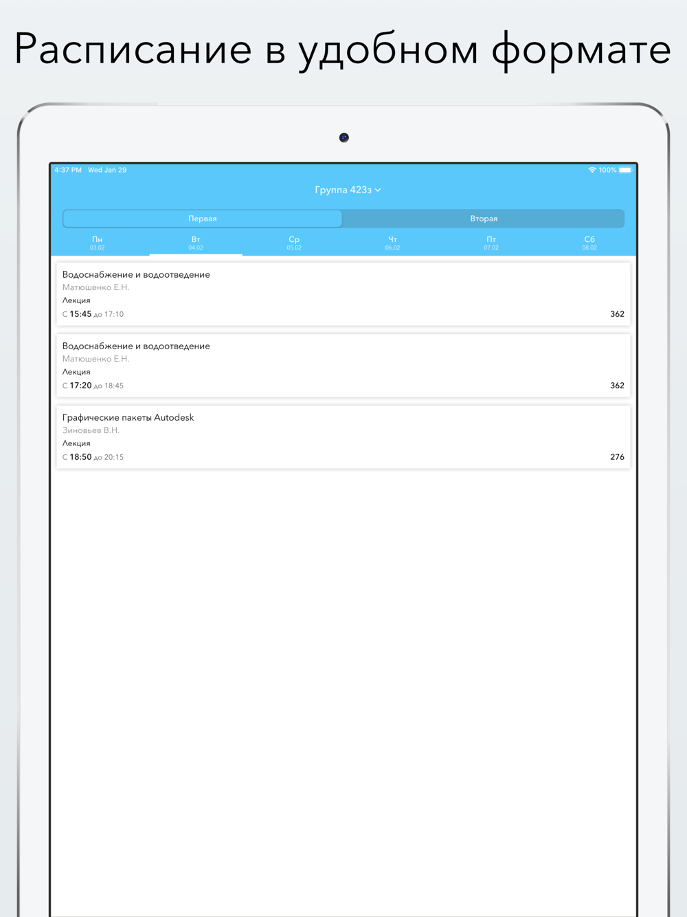 Просматривайте своё расписание в удобном формате, оценивайте преподавателей и пишите отзывы.