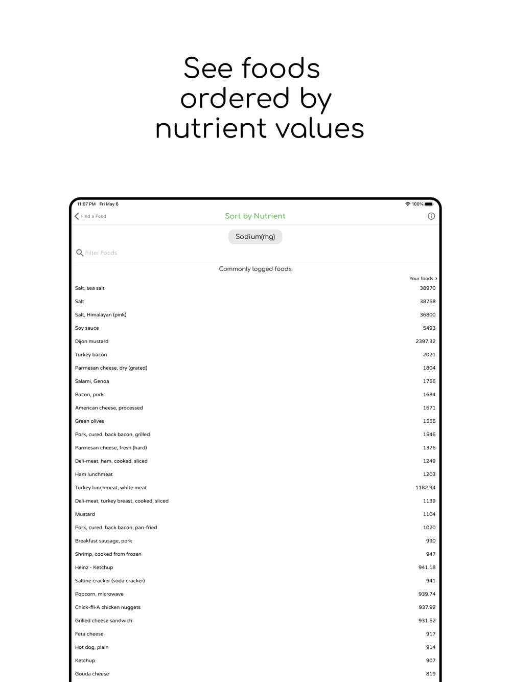 Compare nutrient values across foods