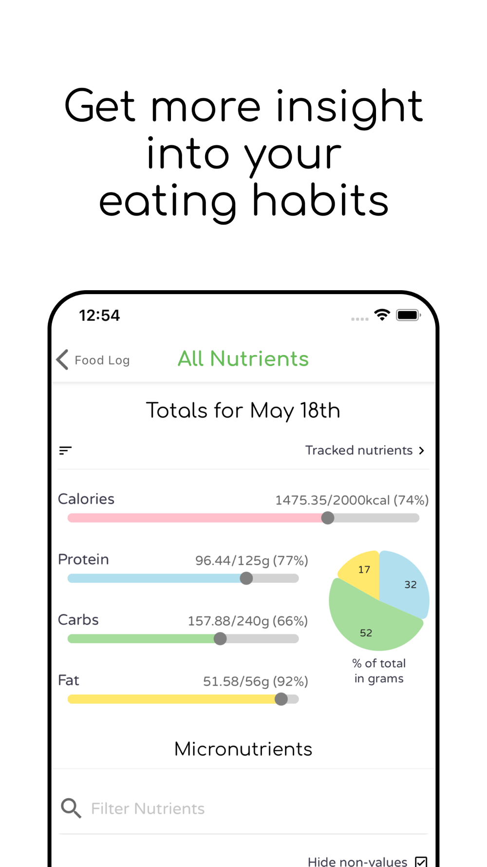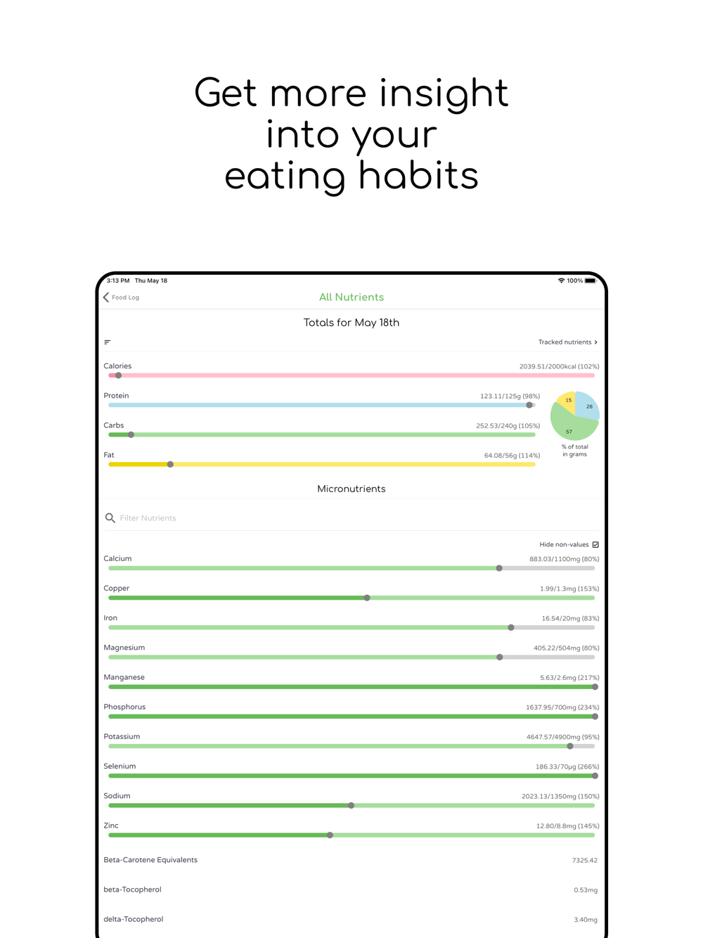 Set your daily macronutrient, micronutrient, and calorie targets