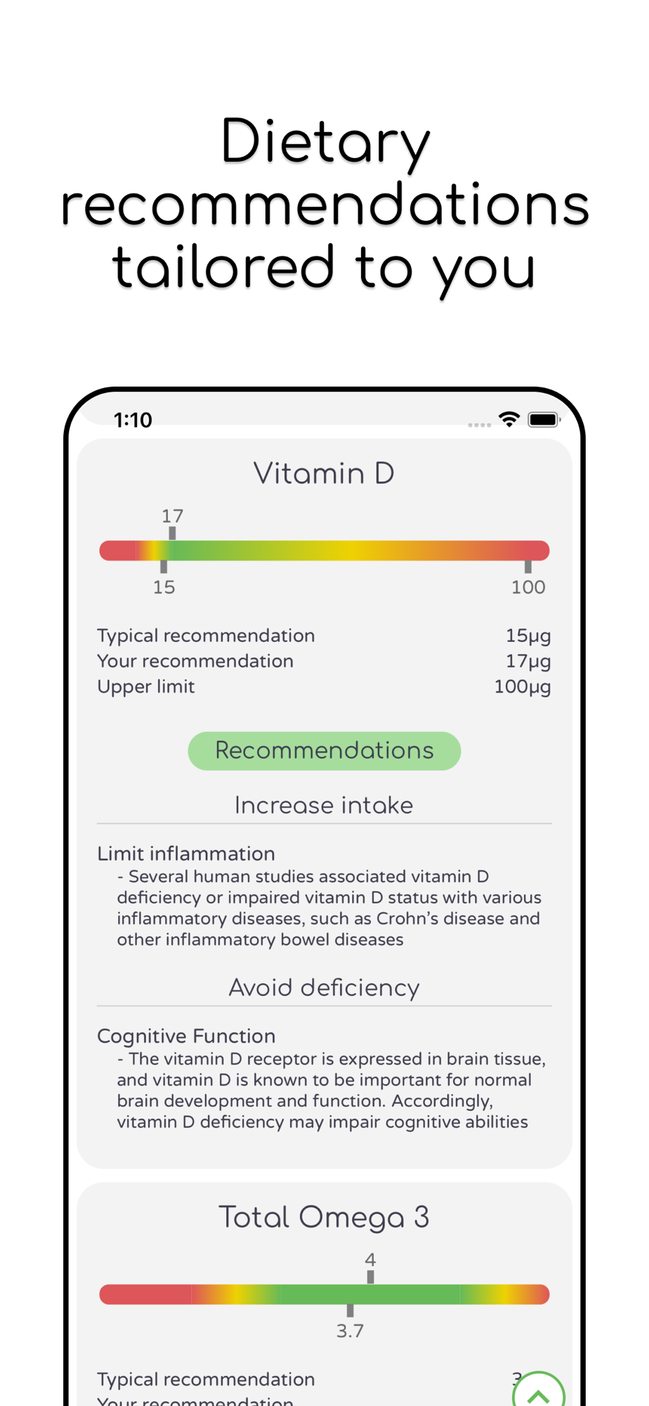 Get nutrient recommendations for your specific conditions