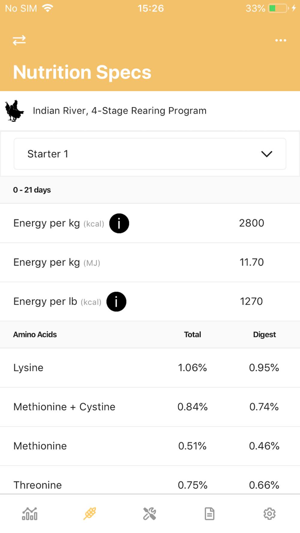 Get the best out of your flock’s performance; with immediate access to information such as Performance Objectives and Nutrition Specifications – all customizable to the unique needs of your Breeder and Broiler flocks. Various tools allow you calculate meat yield, Production Efficiency Factor, dates per flock age and more. Choose your preferred language, region, measurement system, product type and other settings for a highly personalized experience.