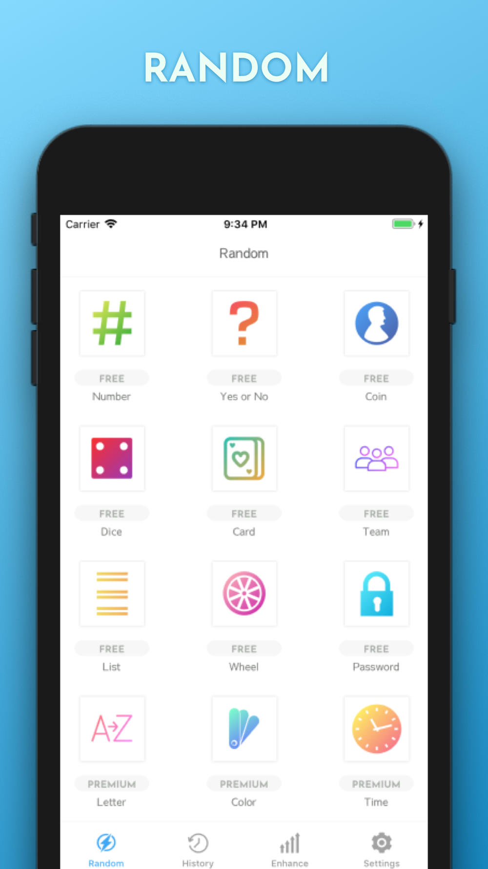 An "random" app with everything you need to do randomly done. This app makes it possible to make decision with decision wheels and in many more ways. This app has a list randomizer, a random team selector, a coin flipper, card shuffler and much more.