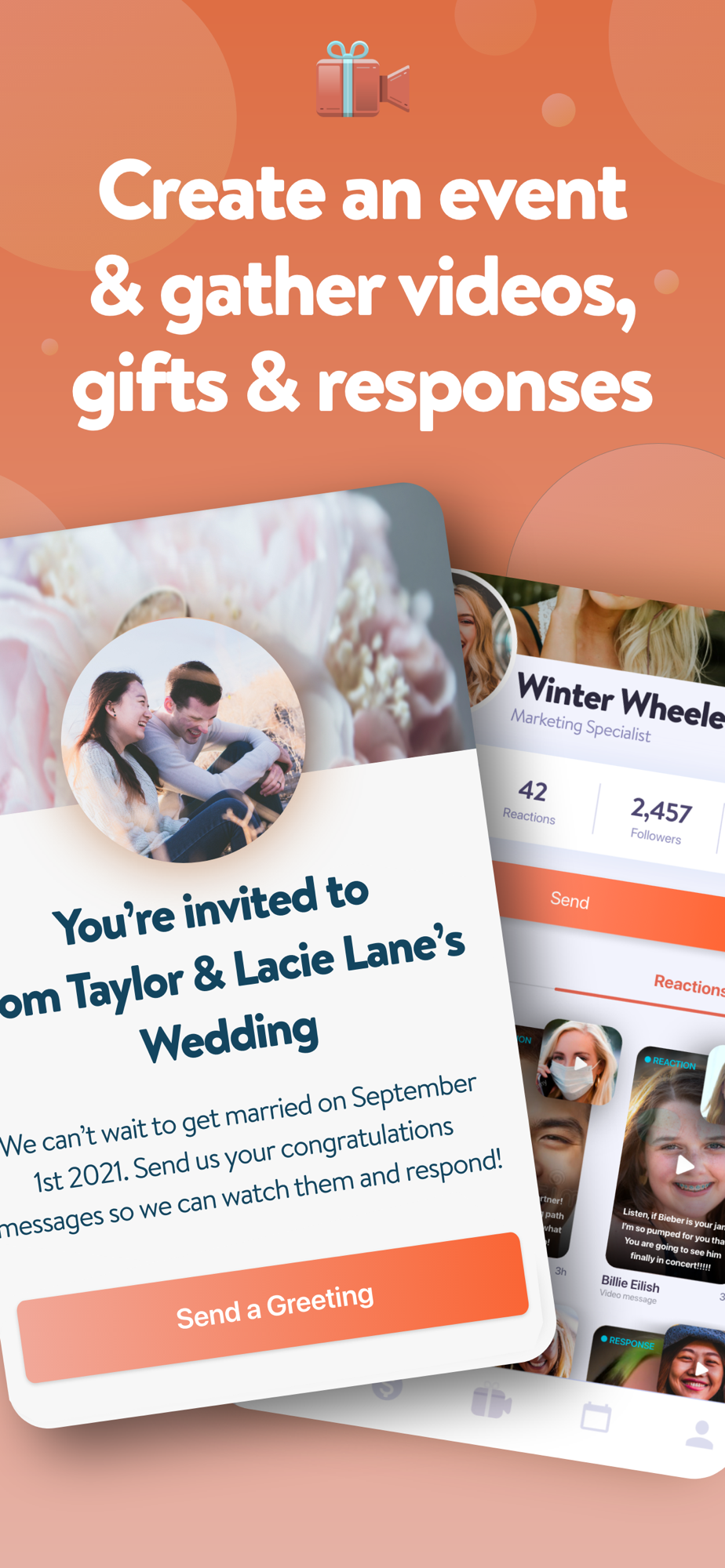 Record a video greeting, add optional cash gifts and see your recipient's reaction to your message. Reactions are saved for the sender and receiver to cherish forever. Cash out your gifts to your Venmo or Paypal account with no fees.