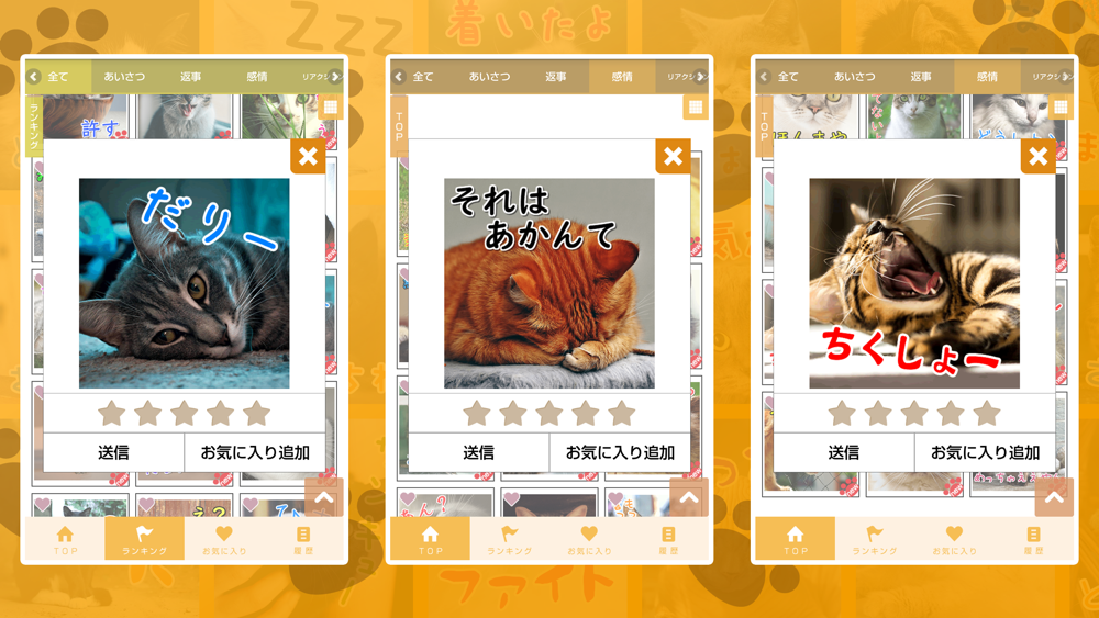 毎日の様々なシーンで使えるポップでかわいい猫のスタンプアプリです。