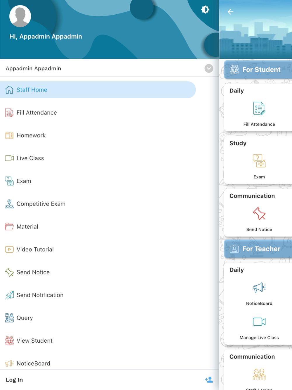 Staff can Fill Attendance, Set Homework,. View Own Attendance, Manage Queries and many more things.