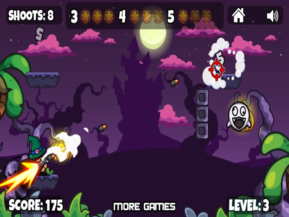 拿起你强大的大炮,帮助女巫师精准射击消灭小怪兽,并争取在每个关卡中获得3颗星奖励。
