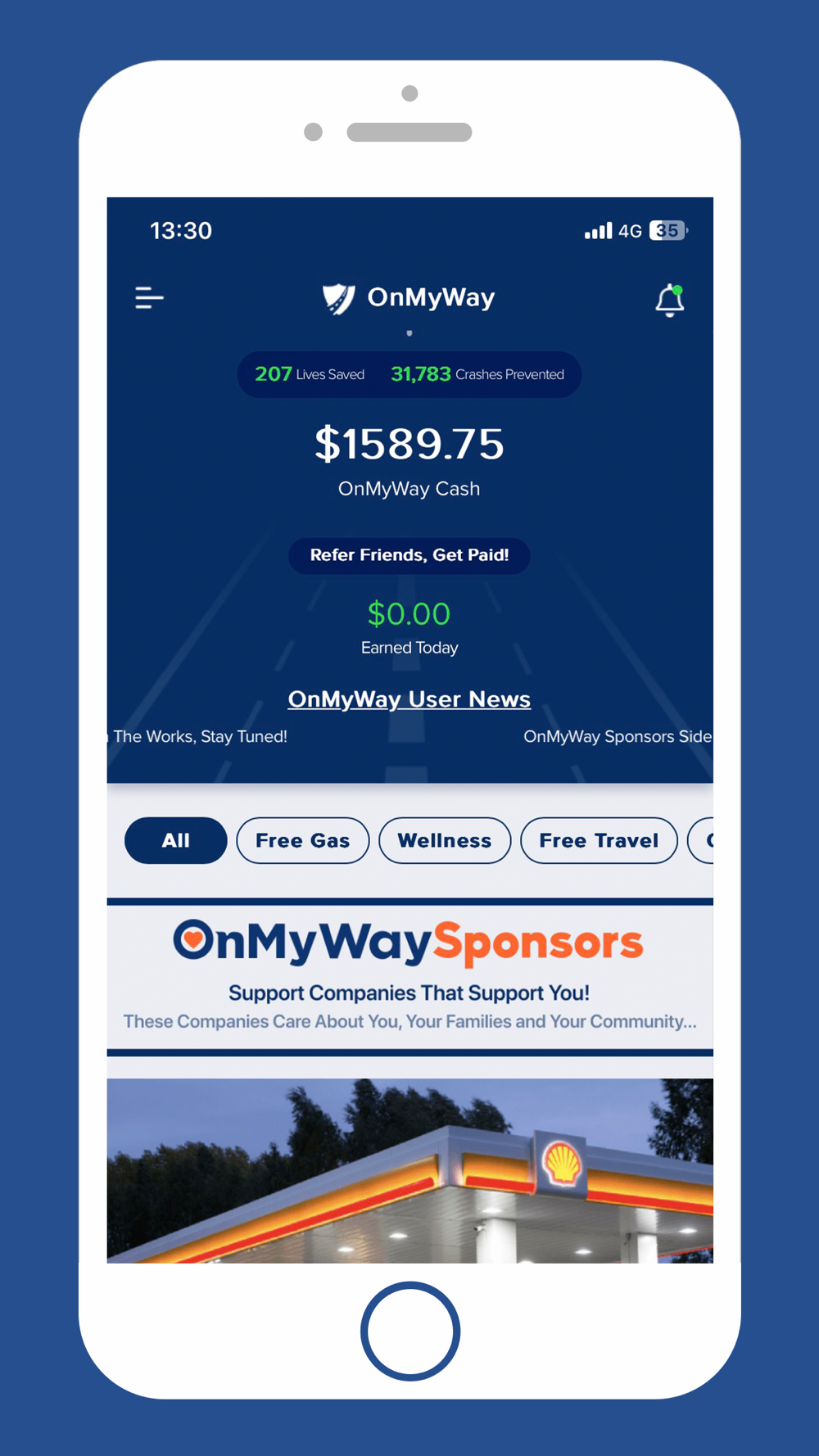 So far (and of course higher by the time you read this), OnMyWay and Our Users have Saved Over 204+ Lives and Prevented Over 31,319 Car Crashes with a Mathematical Certainty.