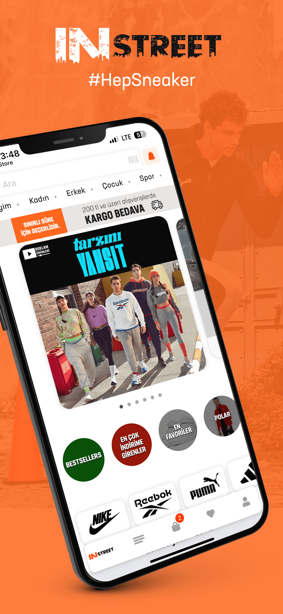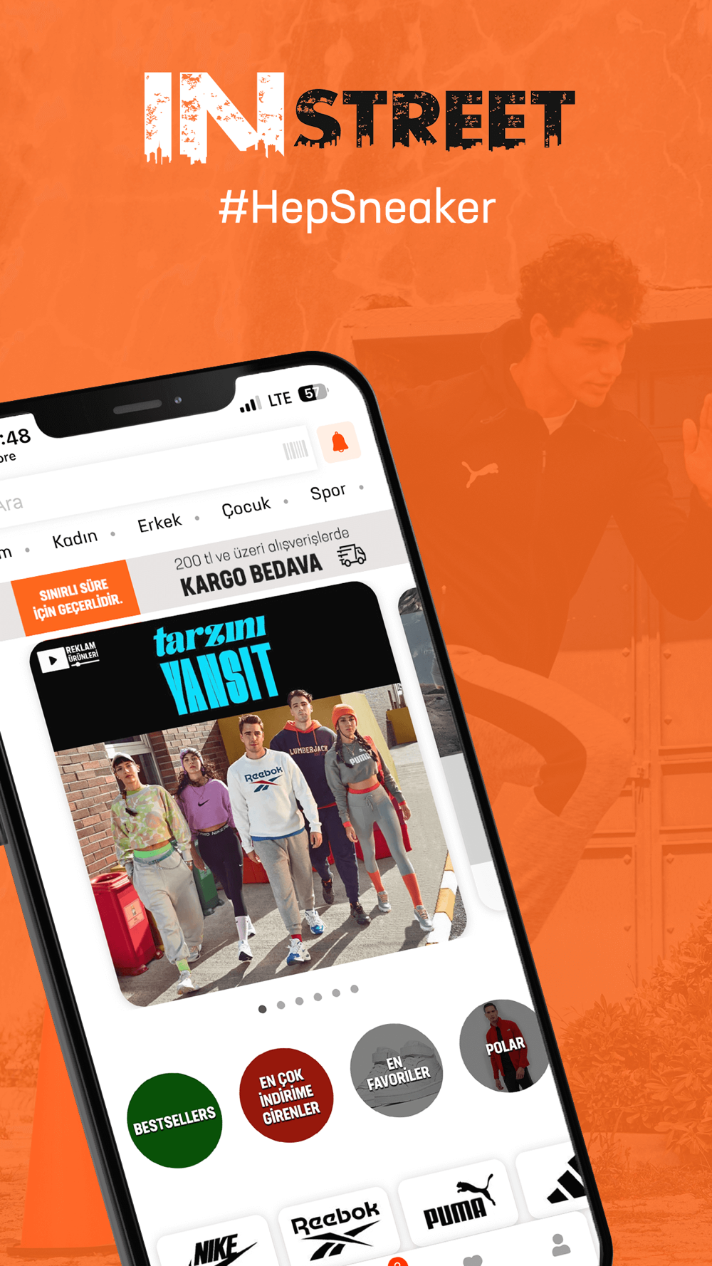 Ayakkabı alışveriş keyfinizi mağaza ya da bilgisayar ile sınırlı tutmayın! İnstreet uygulamasını indirerek en trend sneaker ayakkabı modelleri ile onlarla uyumlu giyim ve aksesuarları tek tıkla satın alma imkanına sahip olun . Dahası Nike, Adidas, Reebok, Puma ya da New Balance gibi dünyaca ünlü markaların en popüler modellerini özel indirim ve taksit imkanlarıyla gittiğiniz her yerde, istediğiniz her saatte satın alın.