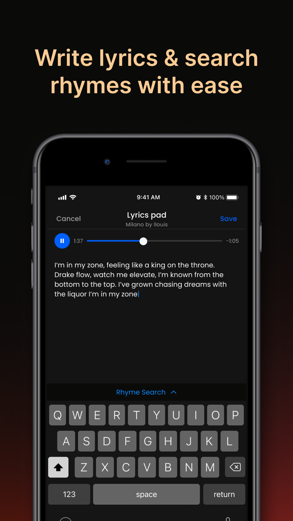 Workflow organization: Write lyrics and search for rhymes with our built-in lyric pad and create unlimited playlists to organize your upcoming projects.