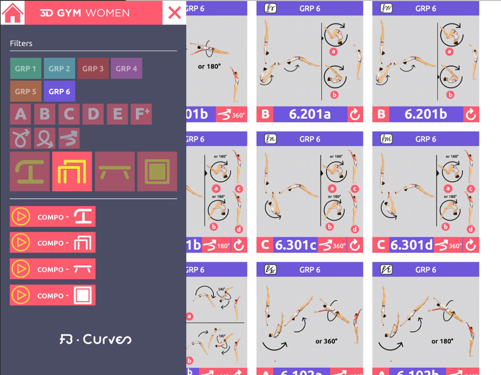 The App is free to download with 23 skills for you to use. Get a feel for this great gymnastic tool and see just how powerfull it is, you can upgrade to a simple version with 400 elements values A to C, or upgrade to the complete version with 850 elements all values.