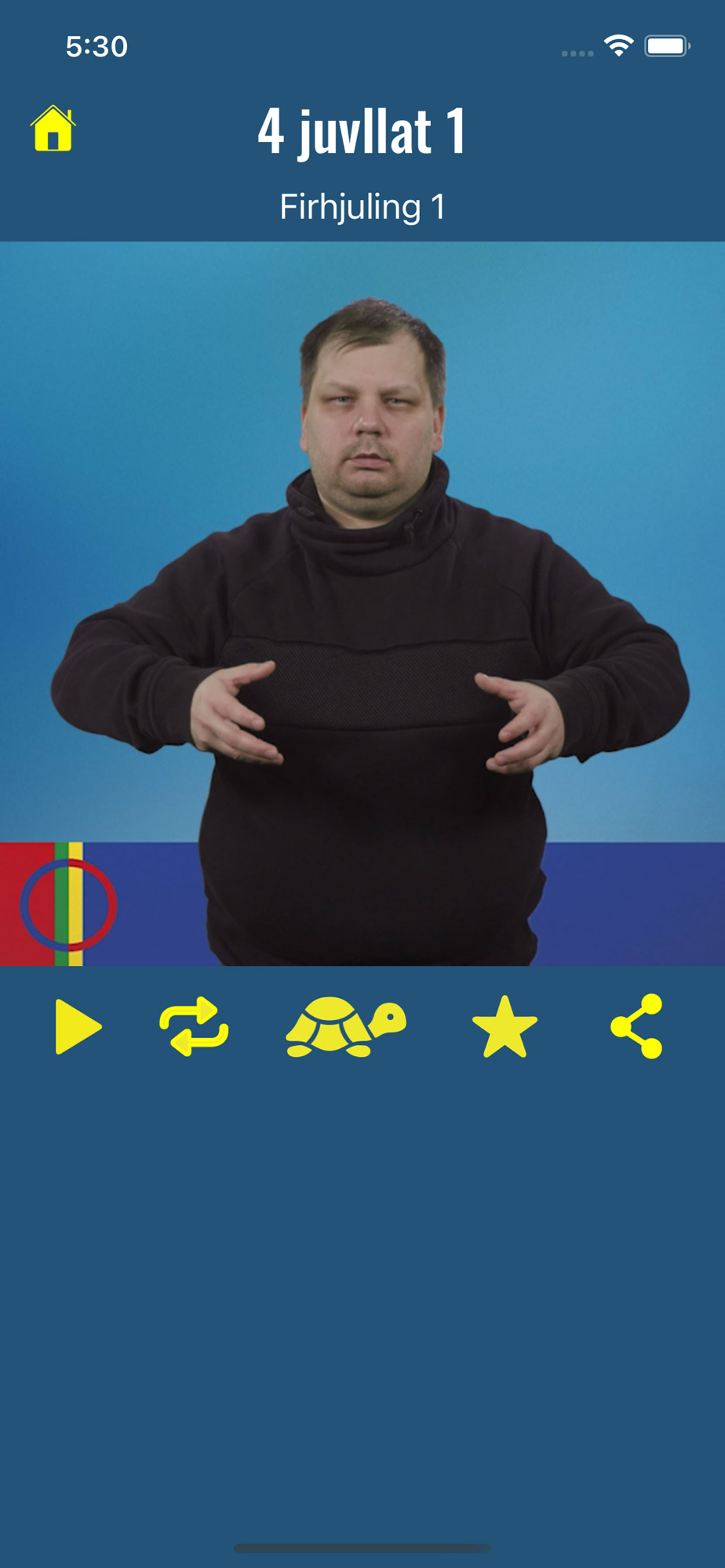 Noen av tegnene er samlet i egne gruppelister. Du kan blant annet se gruppeliste med kun samiske tegn, reindrift, duodji og slekt. Du kan også lage din egen liste med utvalgte tegn. Klikk på stjerna under videovinduet for å lagre tegnet i dine favoritter. Skilpadden gir deg mulighet til å spille av tegnet i sakte tempo. Med pilene kan du velge om du vil spille av tegnet flere ganger. Trykker du delesymbolet kan du sende enkelte tegn, eller link til nedlastning av appen til andre.