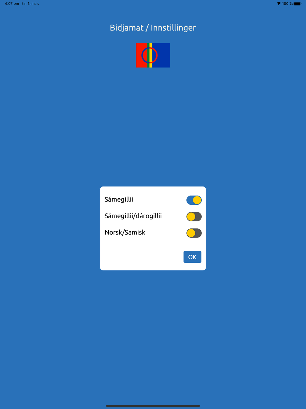 Válljejumiin sáhtát válljet giela mearkkaid sániide; davvisámegiella, davvisámegiella/dárogiella dahje dárogiella/davvisámegiella. Nu sáhtát válljet makkár gillii ohcansátni galgá leat go ozat mearkkaid. Sihke davvisámegielat ja dárogielat sánit lea oidnosis video:in.