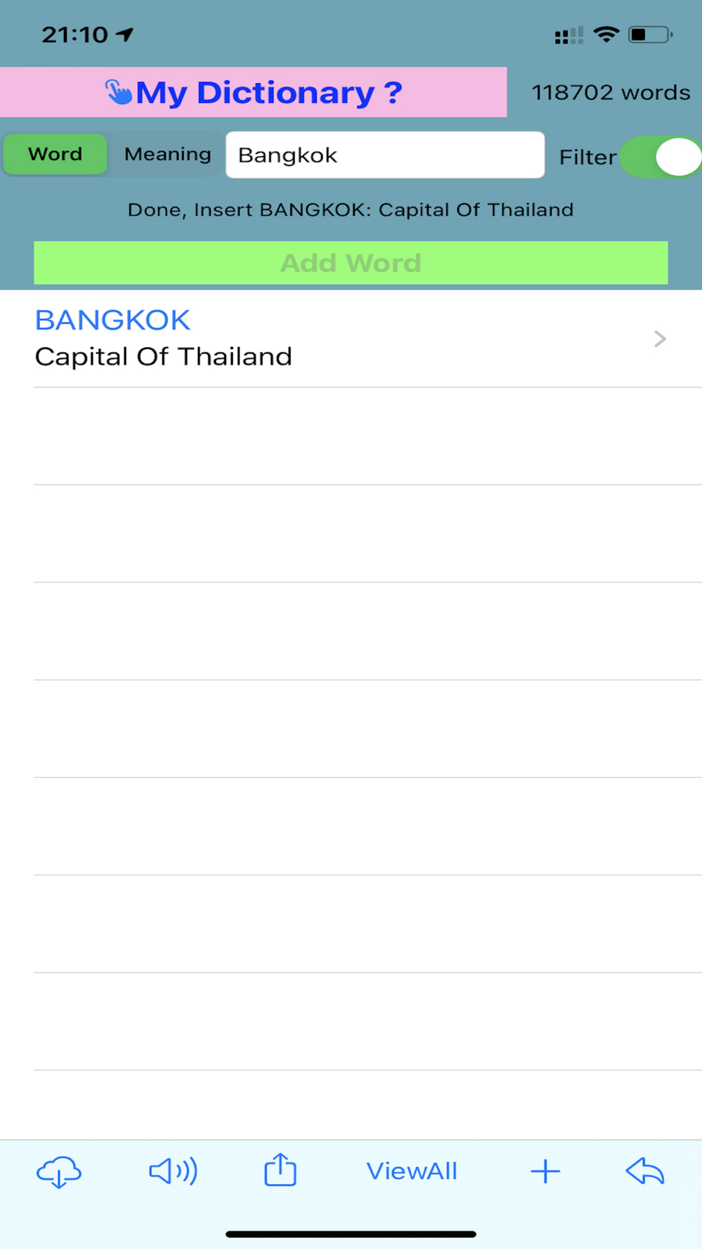 12. Tap Import button to import existing word::meaning dictionary text file, each line delimits by :: (e.g. dict.txt) from iCloud, Drive or phone and merge with existing one.