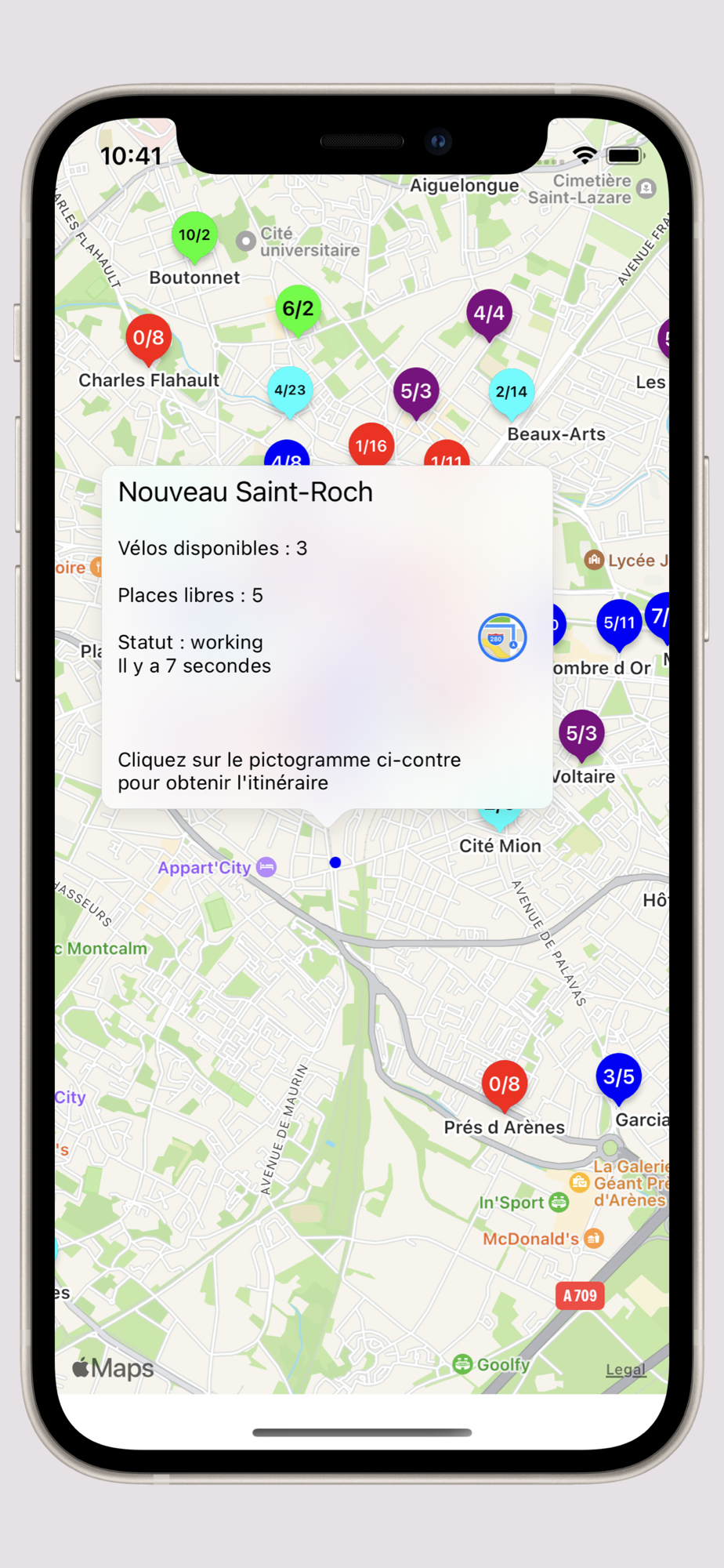 En un coup d’œil vous connaissez le nombre de vélos et de places disponibles de tous les parkings Velomagg à Montpellier (et Pérols)