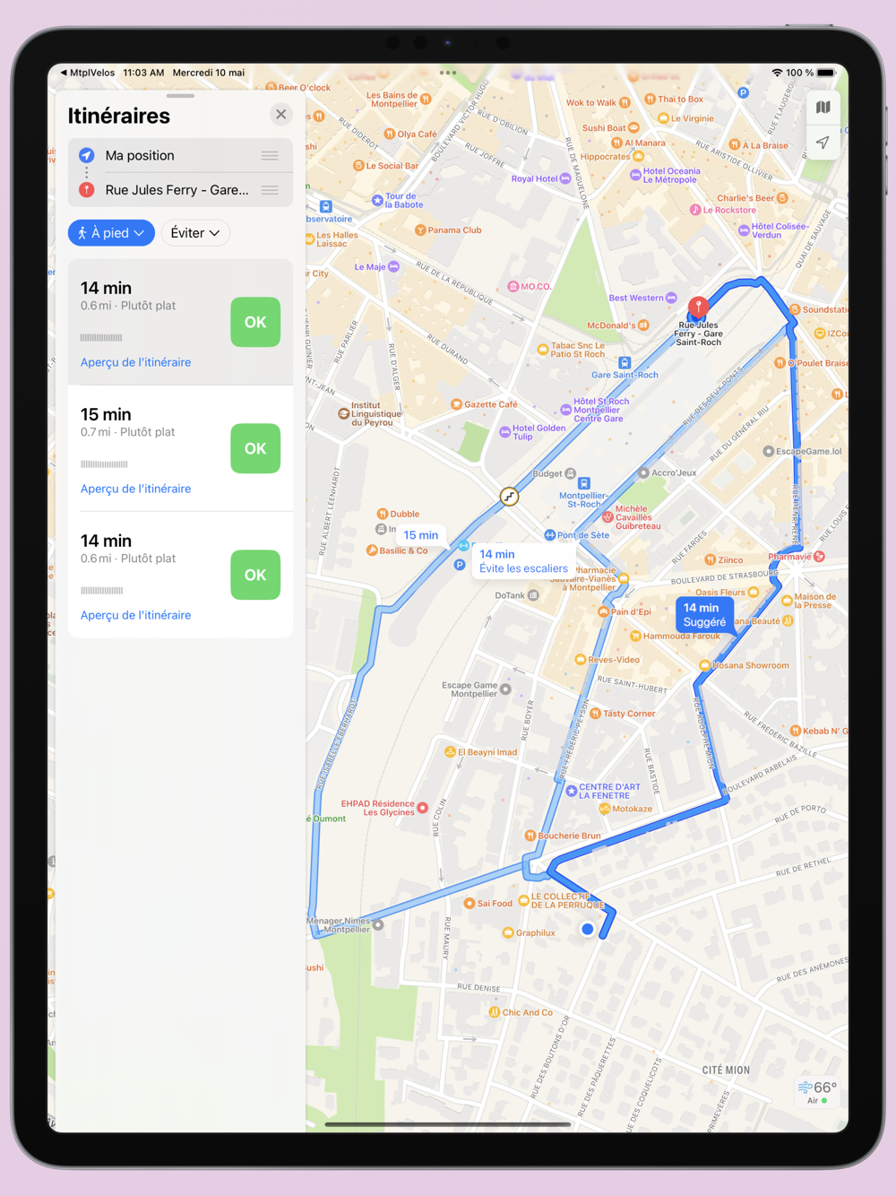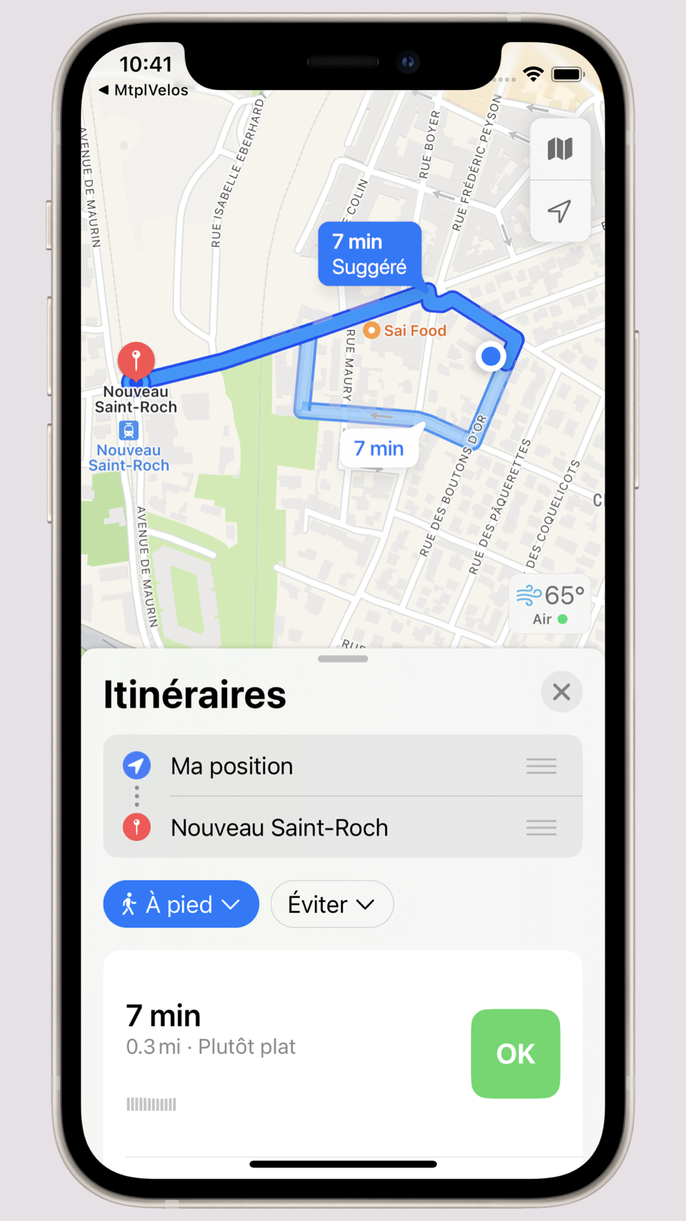 En sélectionnant un parking, l'application vous propose un itinéraire entre votre position et l'entrée du parking choisi.