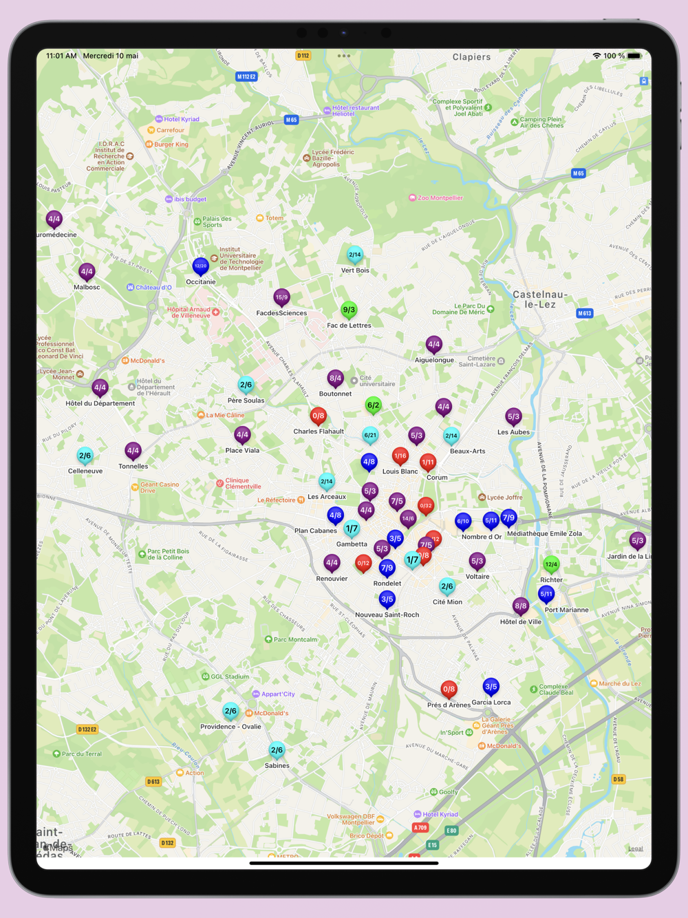 Les données sont mises à jour toutes les minutes par Montpellier Méditerranée Métropole.