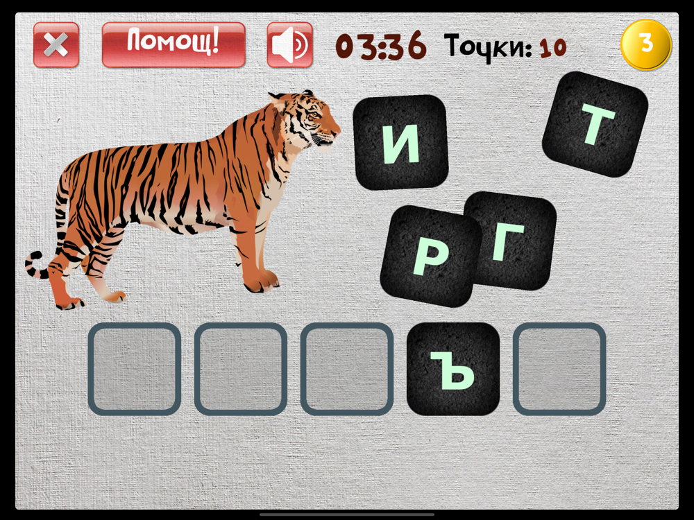 Целта на тази игра е да се подреди правилно името на животното на картинката.