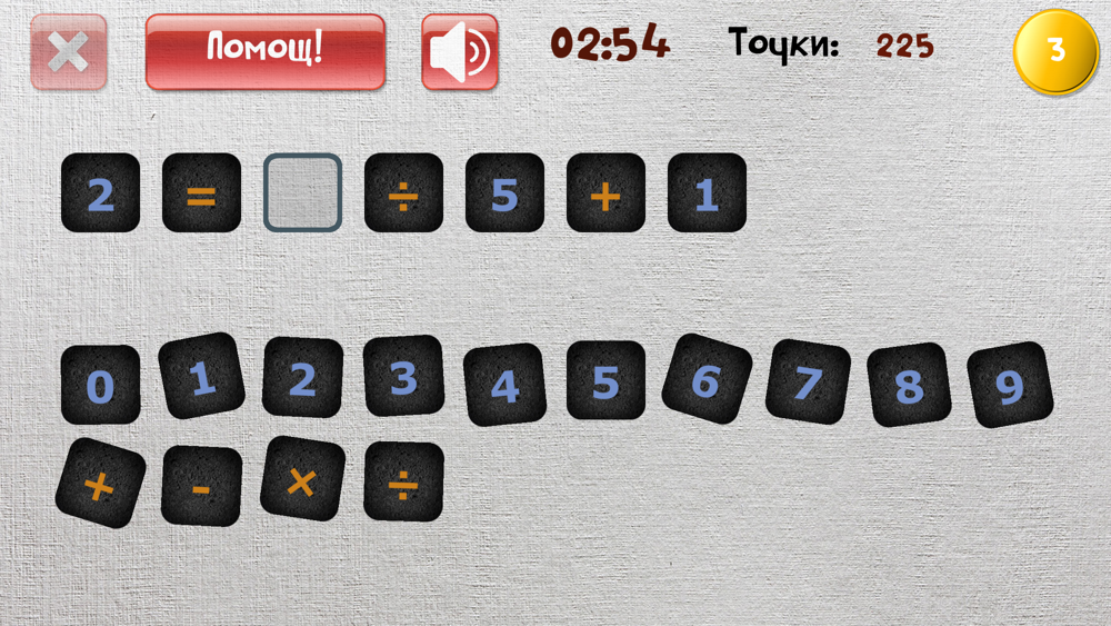 Целта на тази игра е да се открие правилната цифра или аритметичен знак в аритметичен израз.