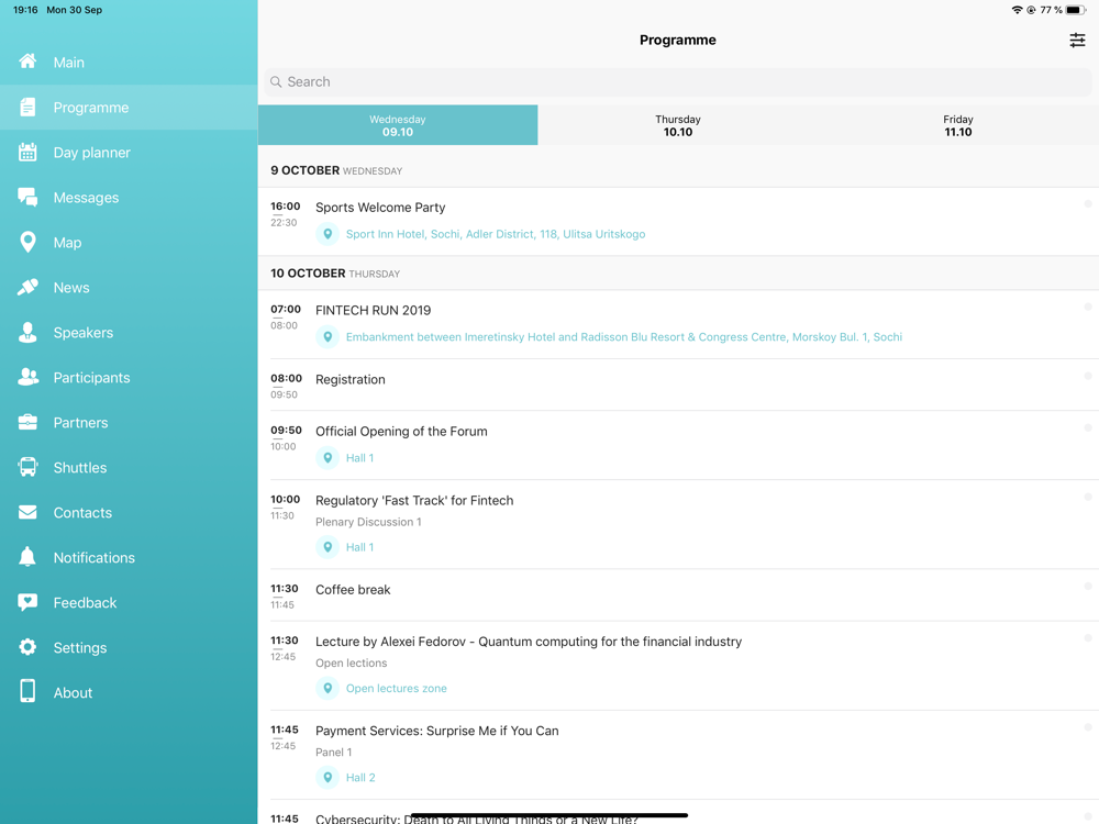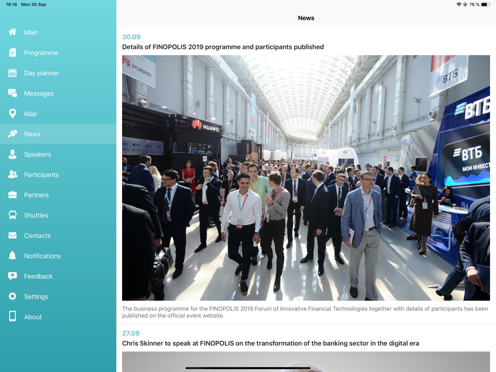 The mobile app for the FINOPOLIS is the best way to get the latest information about the event and learn about services offered at the forum.