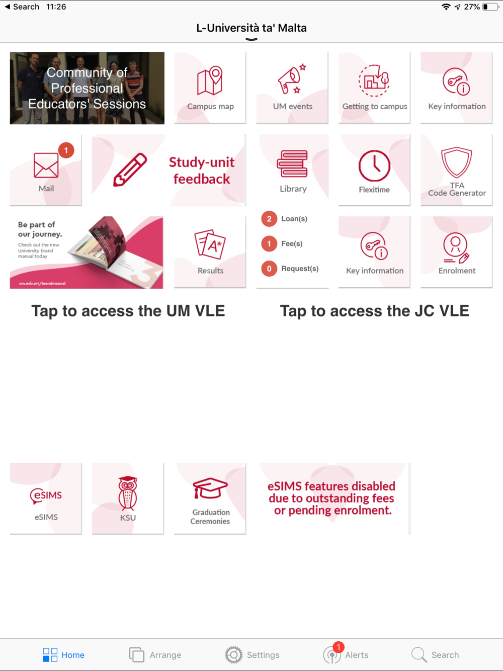 It features key information such as UM services opening hours, staff directory, news and events, the Msida campus map, as well as personalised information. As a student at UM, this app will provide support at all stages. We'll keep you in the know about news and events, assignment deadlines, your results, library services, VLE, eSIMS and other useful information.
