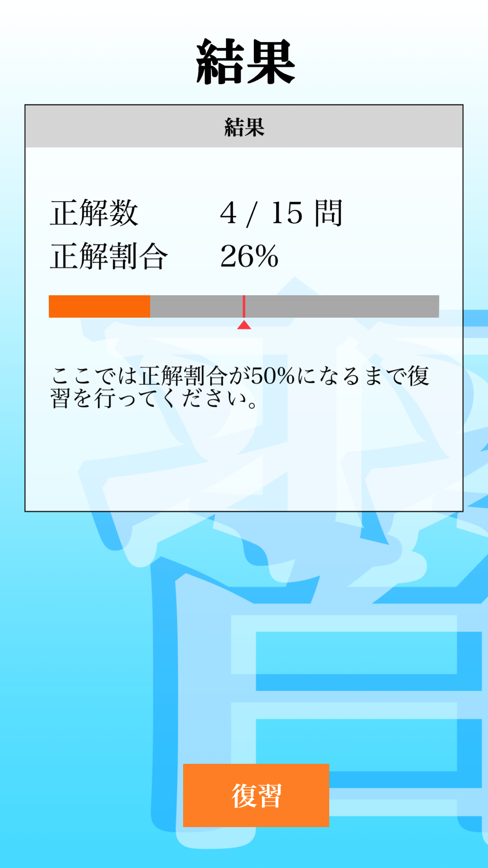 本アプリでは何度でも違う試験を行うことができ、正確に自分の実力を測ることが可能です。