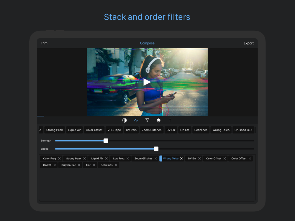 • Stack multiple effects and glitches