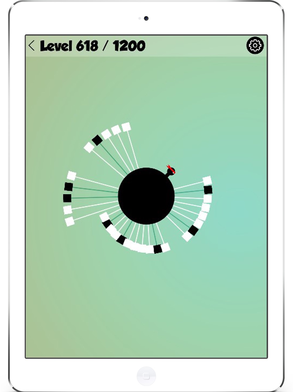 The ninja keeps walking on a circle while it rotates faster and faster.Tap the ninja at any screen position to destroy the white tiles but be careful not to touch the black tiles!!