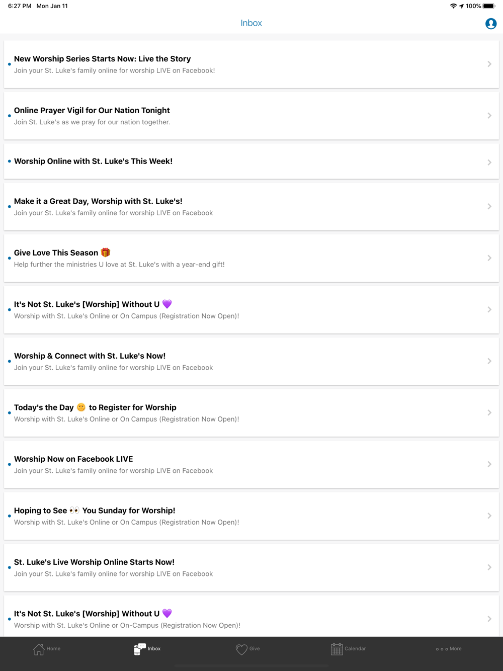 Download the St. Luke's app and stay up to date on news U can use! Register for events, Bible studies, youth/children's programs, support groups, service opportunities, and more. Worship with us on the go, share a prayer request, and give to the ministries you love all from your mobile device. App users can opt-in to receive exclusive content and notifications from St. Luke's.