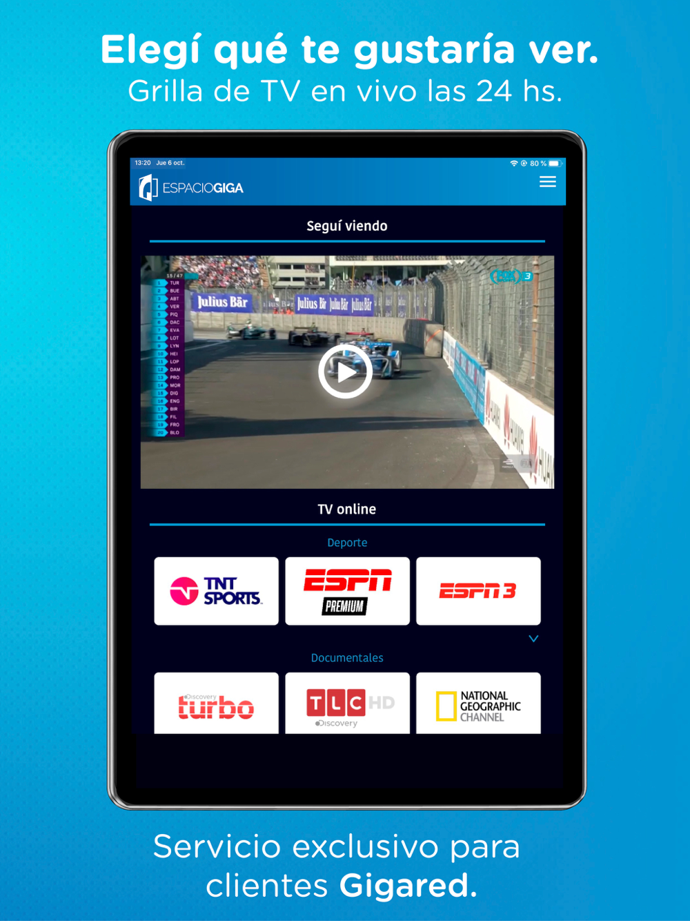 Viví la #ExperienciaGiga disfrutando de TV Online desde cualquier dispositivo, también podrás autogestionar tu cuenta Gigared y pagar tu factura.