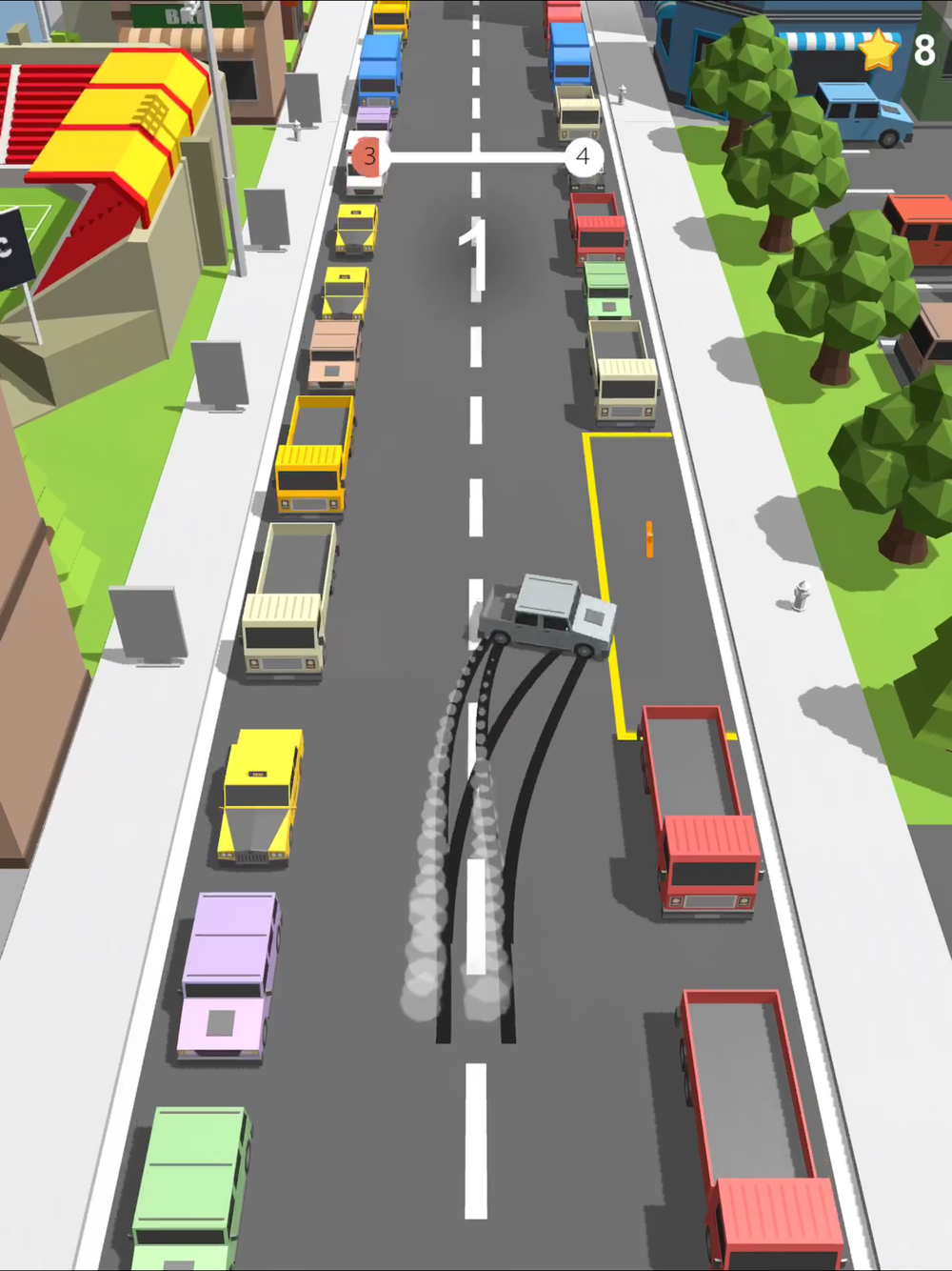 Park your cars using Tap, fill the parking zones and dodge the traffic lines.