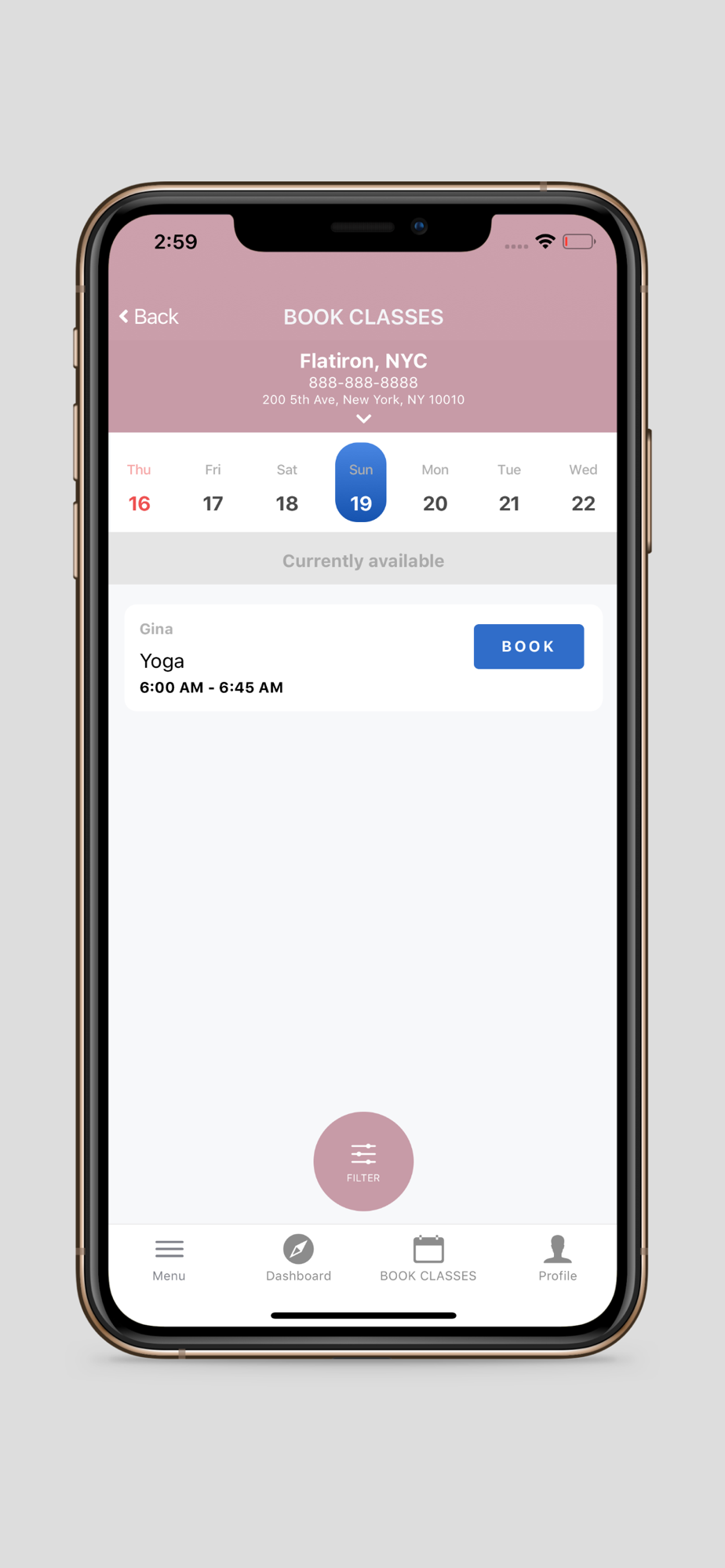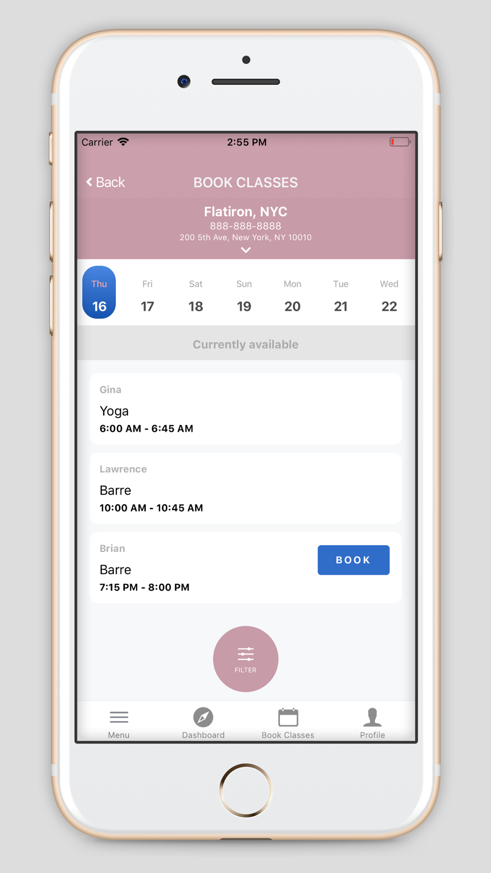 This app has features like workout stats, class bookings and purchasing class packages.