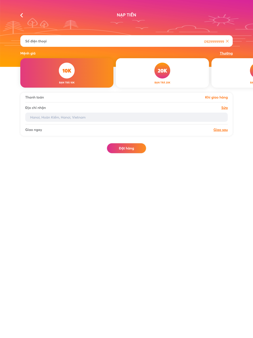• Nạp tiền cho số điện thoại của bạn hoặc cho bạn bè,gia đình