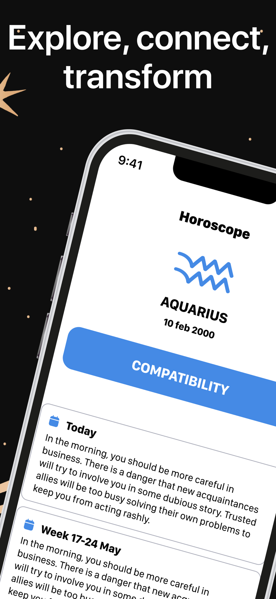 Unlock the mysteries of the stars with Talk to Star: horoscope - a personalized horoscope app that brings the cosmos to your fingertips. Our cutting-edge astrological tool uses your personal data to deliver a unique celestial roadmap to your relationships, friendships, and love life.