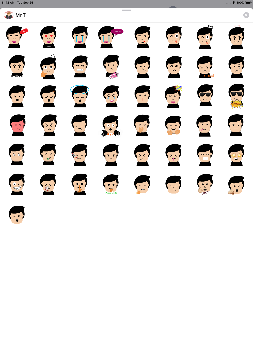 - 分享有趣和可爱的Mr.T动画贴纸给IMessenger的朋友,家人和亲戚。
