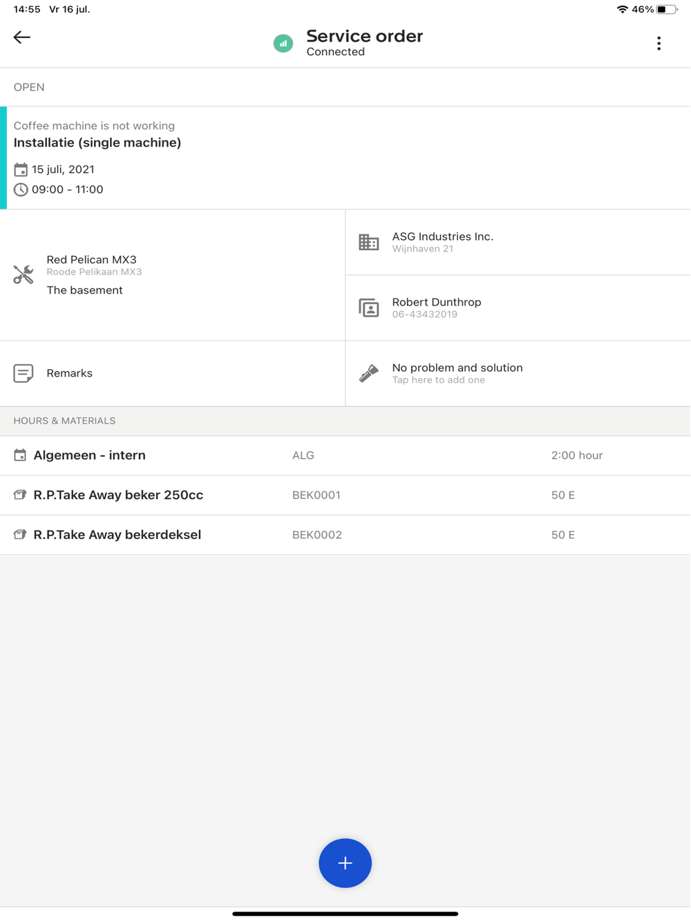 With the Exact Field Service H app, service engineers have all work order information, customer service history, documents, service parts info, manuals etc. available in the field.