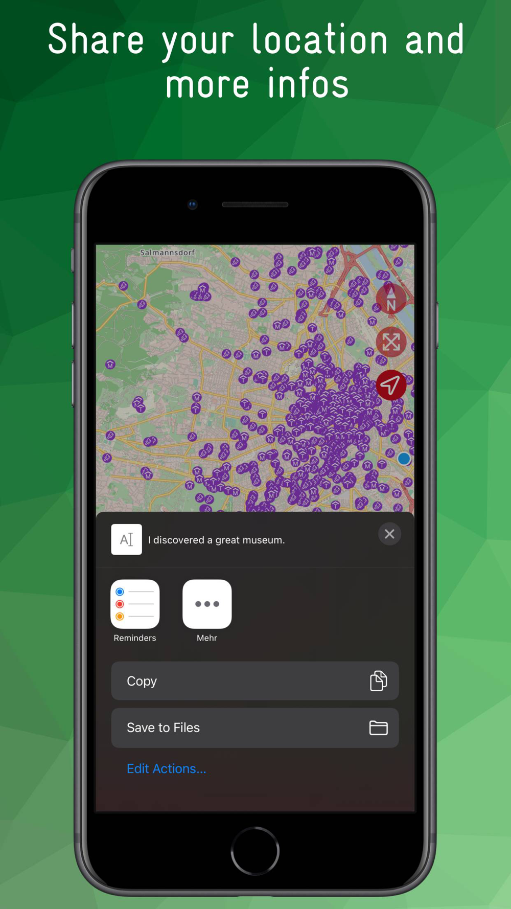 A location function shows the current position, the app is ad-free and there is no tracking.