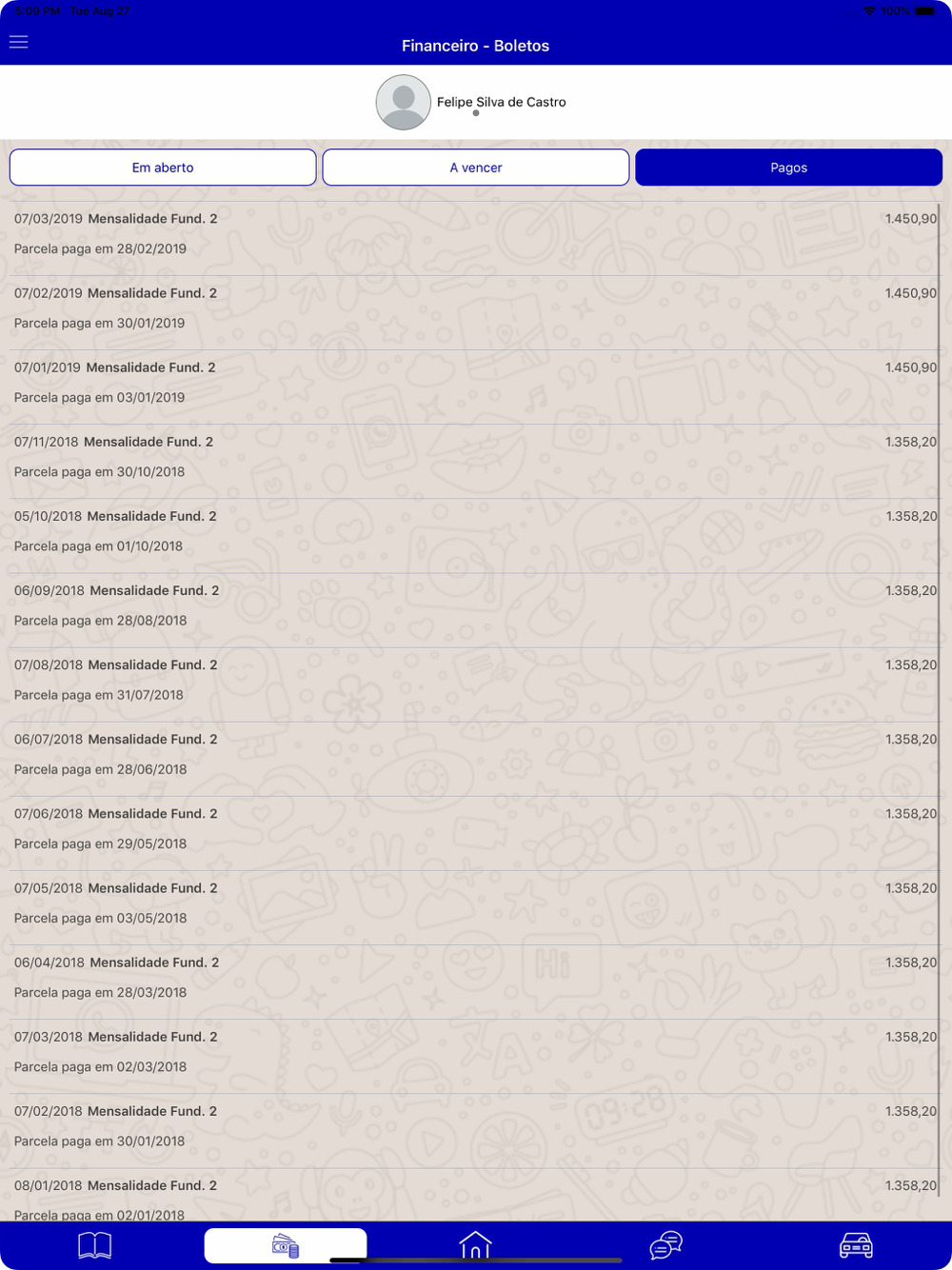 - Impressão de boleto bancário (para responsáveis financeiros) com atualização de valores;