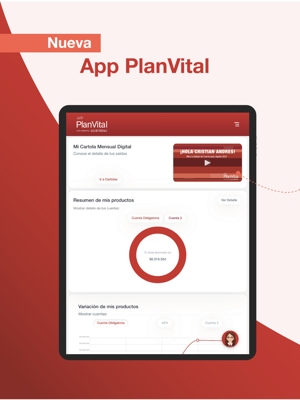 La nueva App PlanVital te acerca a lo que es realmente importante para que estés informado y tengas la tranquilidad en tu futuro, en cualquier momento y lugar. La nueva App trae lo mejor de tu Sucursal en Línea en la palma de tu mano con un diseño innovador y nuevas funcionalidades que te permitirán obtener la asesoría y experiencia que necesitas para que tomes las mejores decisiones sobre tus ahorros.