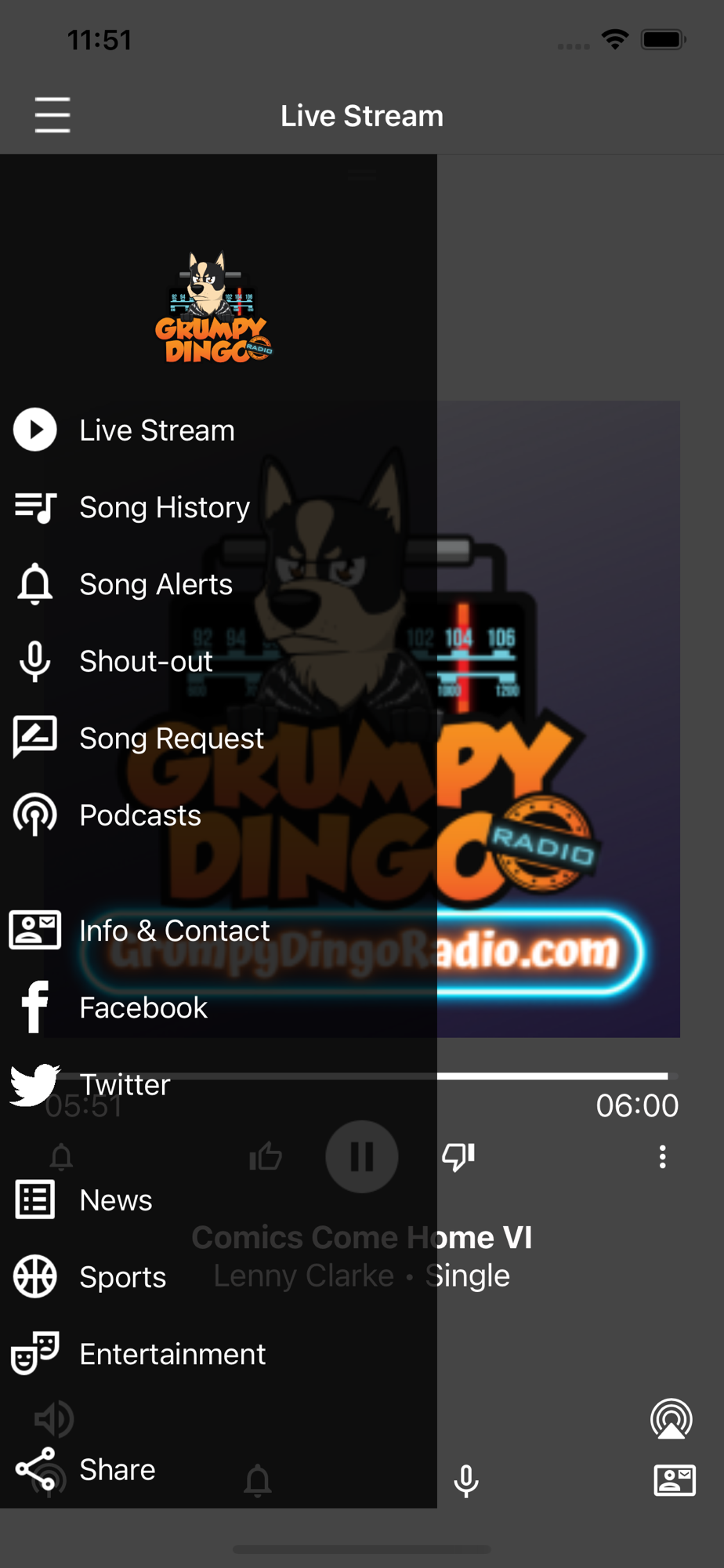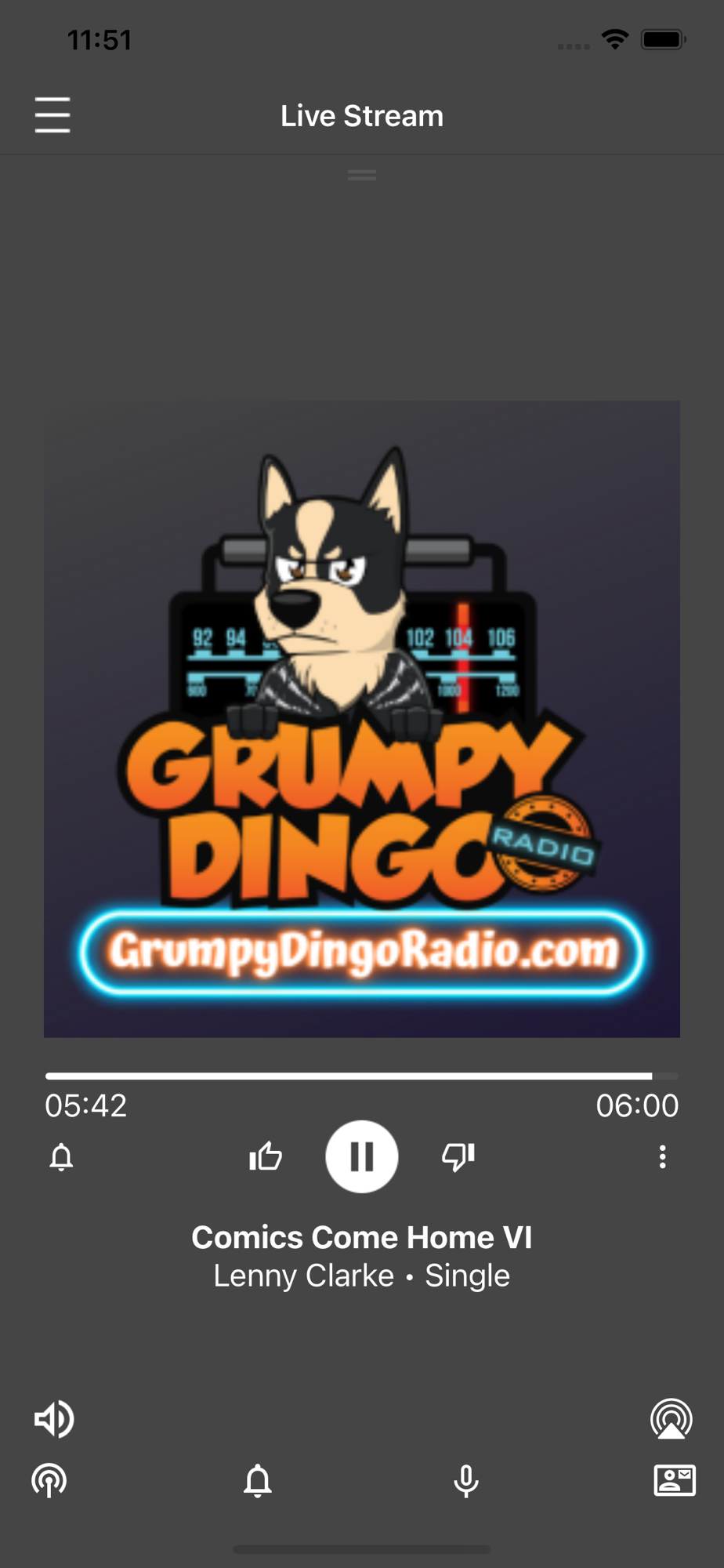 Grumpy Dingo Radio streams stand up 'Comedy in Bytes' 24 hours a day, 7 days a week. We are currated for maximum laughs and listener supported. Check out our website at www.GrumpyDingoRadio.com and make sure to follow us on social media.