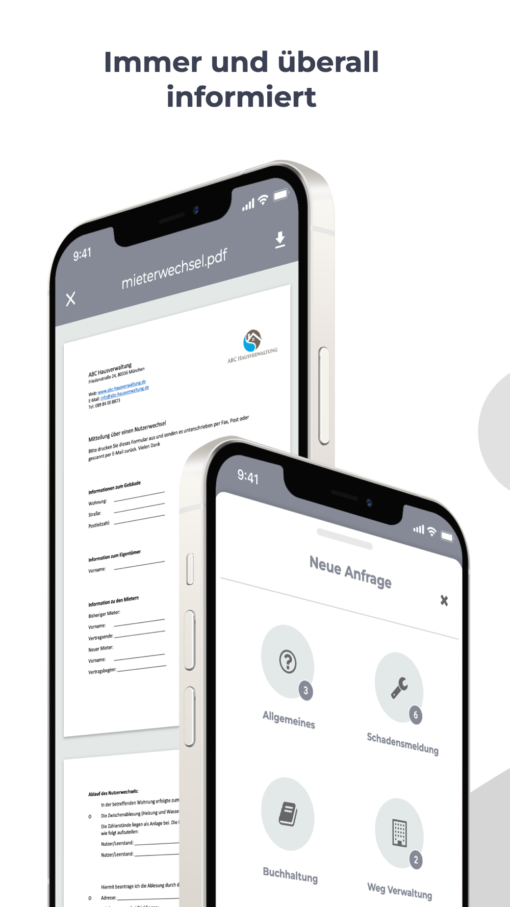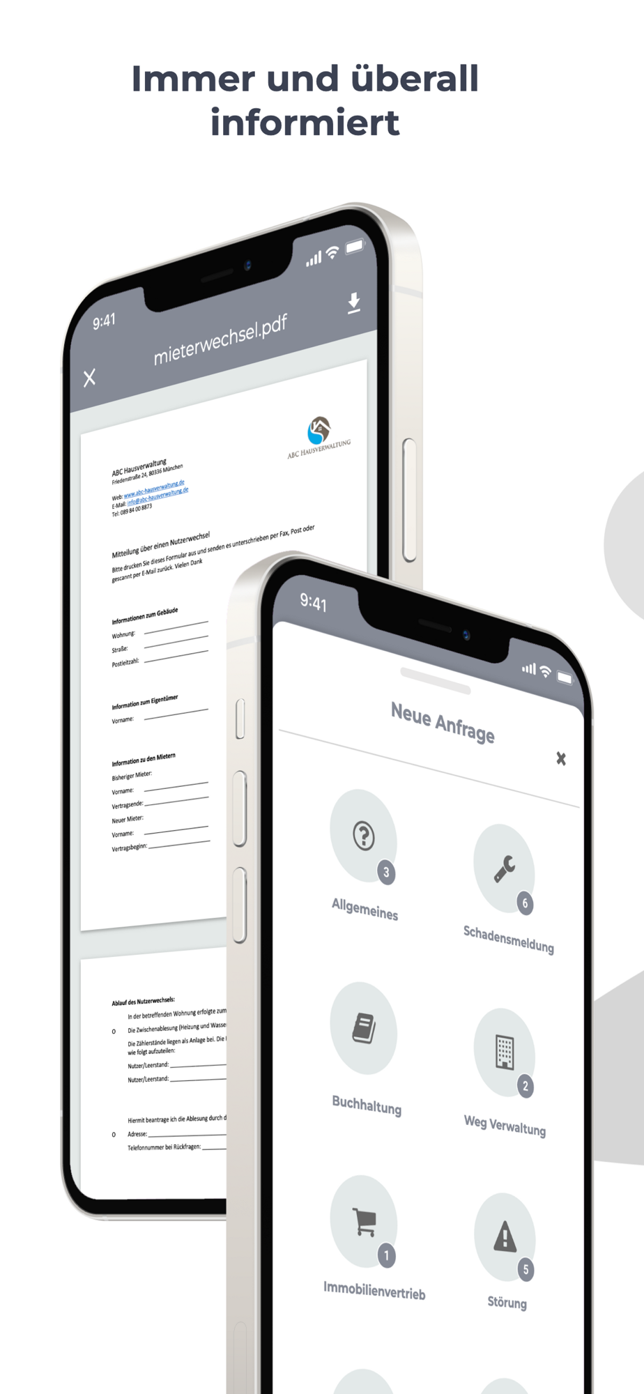 Eine digitale Verbindung für alle, die sich regelmäßig austauschen, damit Wohnen und Vermieten reibungslos funktionieren: Mieter, Eigentümer, Hausverwaltung und andere Dienstleister. Wir freuen uns auf Sie!